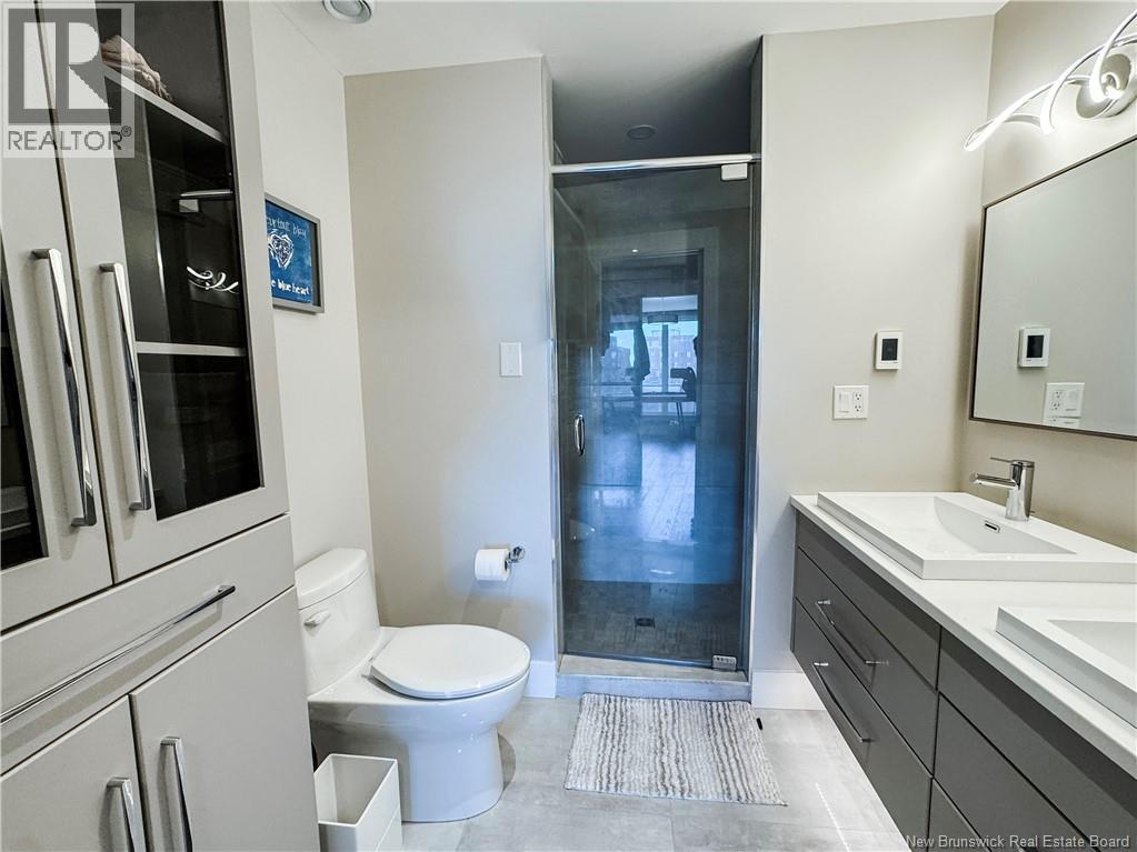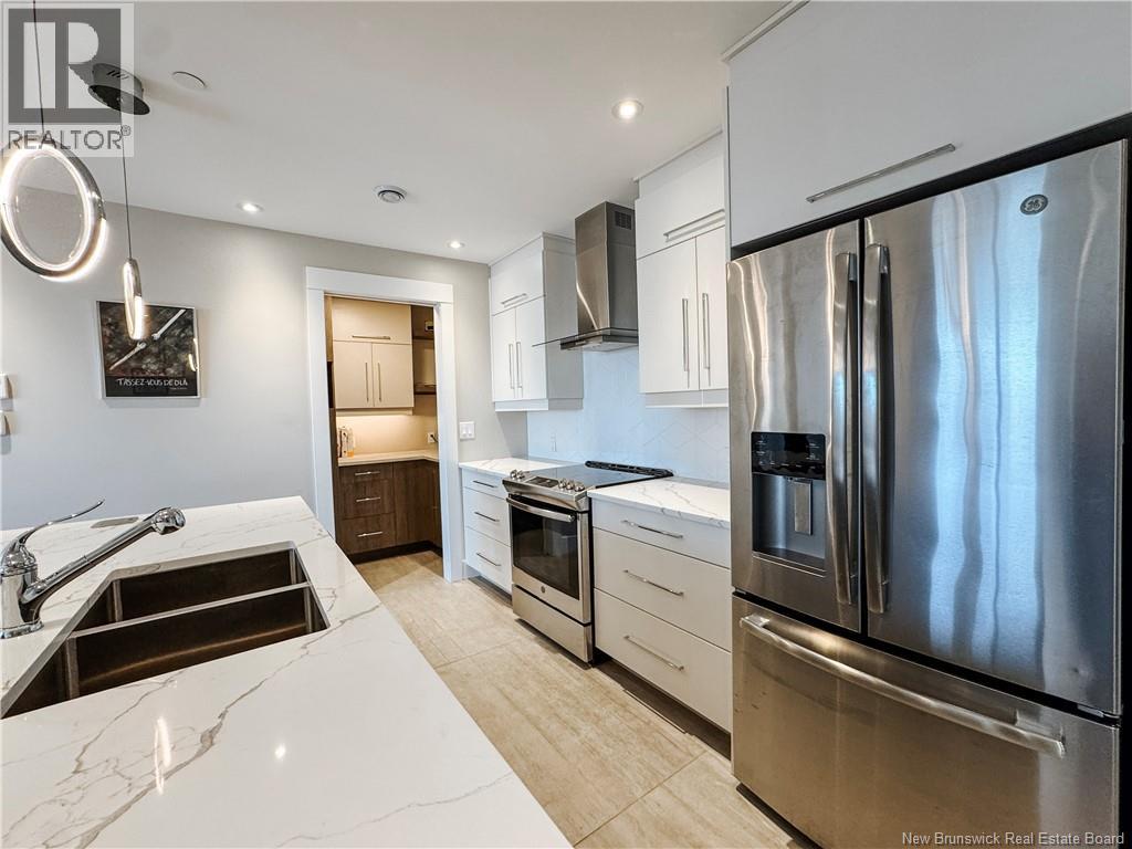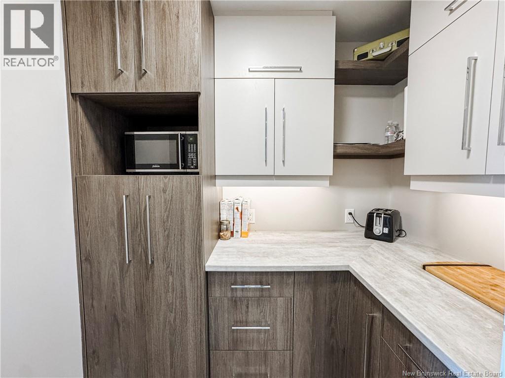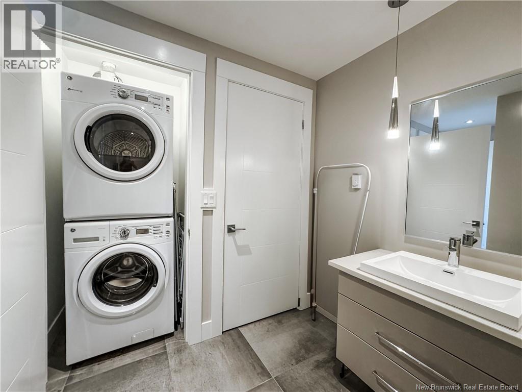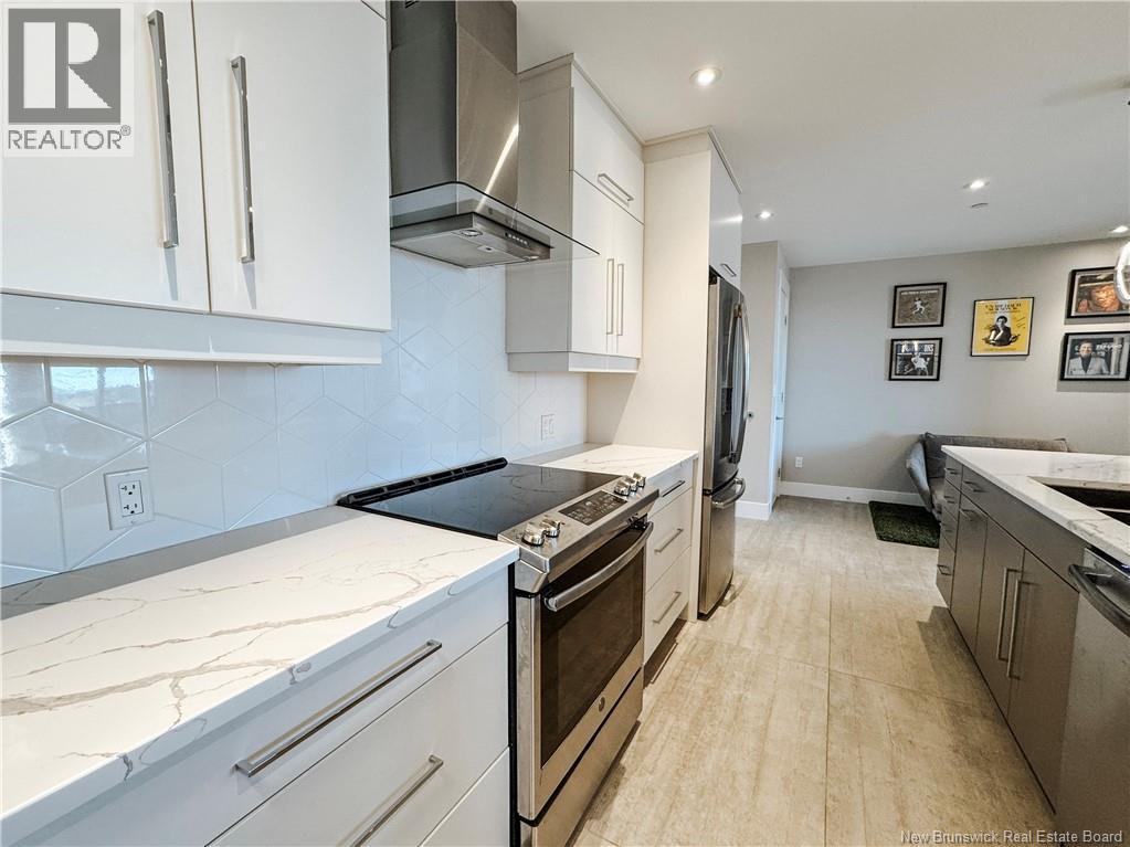 Welcome to 55 Queen, where urban sophistication meets effortless convenience. This condo offers 1,141 square feet of open-concept living space plus a secure separate storage room of 157 square feet, giving you a total of 1,298 square feet of usable space. Inside, you will find 9-foot ceilings, two spacious bedrooms, and two bathrooms. The thoughtfully designed kitchen features a custom walk-in pantry with cabinets and a quartz countertop, along with under-cabinet lighting and additional cabinetry with a glass door for both function and style. The ensuite bathroom includes extra cabinetry for storage and glass shower doors with ceramic finishes, creating a clean and modern look. Enjoy bright south-facing exposure and beautiful city views from your large private balcony. The home includes one underground parking space with additional storage, and residents have access to a 24-hour secure training center. Relax or entertain on the interior and exterior rooftop terraces, offering some of the best views in town. Located in one of Monctons most desirable developments, you will be steps away from premium amenities including Gahan House Restaurant, the chic Palette Rooftop Bar, Bar55 Café, and the Canvas Hotel on floors 2 through 4. This is more than a home, it is a lifestyle. Experience the best in downtown luxury living. Take the 3D tour or contact your REALTOR® today to book a private showing. Note: Property taxes are based on non-owner occupied status. (id:35613)