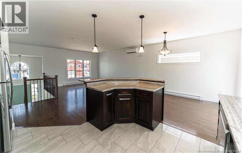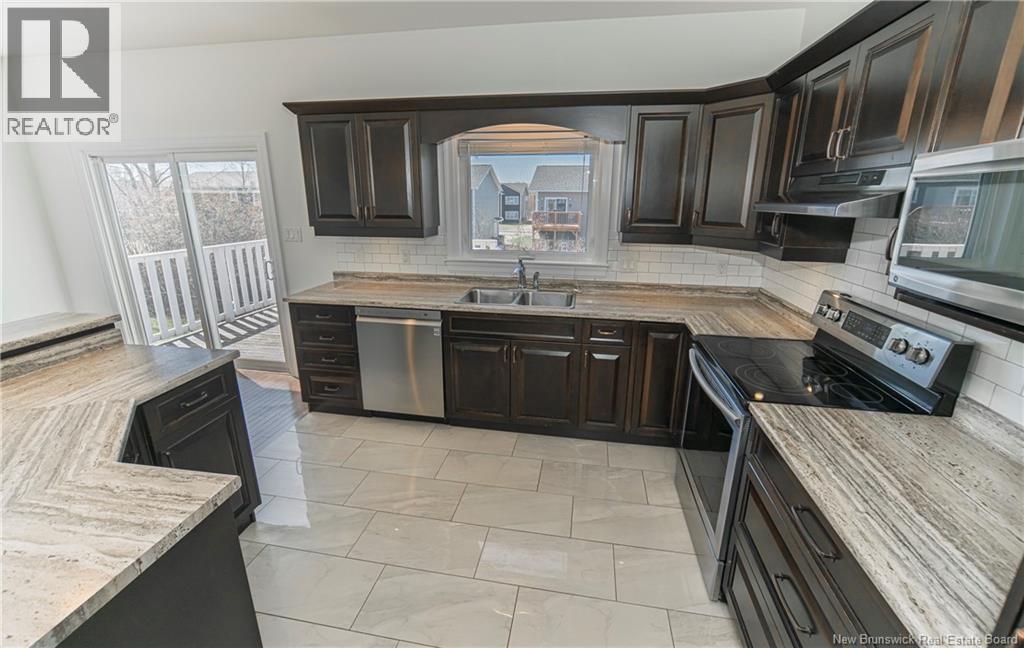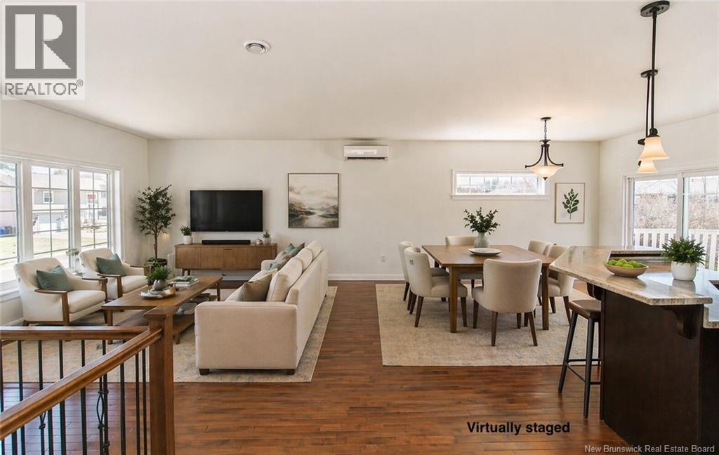Beautiful Split Entry with Double Car Garage. Large foyer with two closets welcomes you in, featuring hardwood staircase with wrought iron balusters sets the tone. Main level is bright and open with hardwood floors and heat pump for efficient heating and cooling. Spacious living area connects seamlessly to dining space, where patio doors lead to back deck and fenced backyard. Kitchen stands out with dark cabinetry, ample prep space, tile backsplash, and a functional island with breakfast bar seating. Smart design continues with French pocket door separating living area from bedrooms for added privacy. Primary bedroom offers walk-in closet and private ensuite. Two additional well-sized bedrooms and full bath. Main floor freshly painted. Lower level delivers bright family room, second heat pump, fourth bedroom, and full bath with laundry - ideal for guests, teens, or flexible living. Outside, enjoy fenced backyard with room to play, relax, or garden. Attached double garage adds convenience and storage. Great location, close to parks and easy access to schools, amenities and highway. Taxes reflect non-owner occupied. (id:35613)