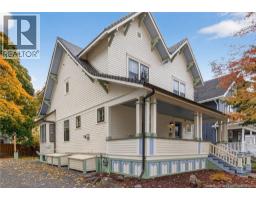 When Viewing This Property on Realtor.ca Please Click on The Multimedia or Virtual Tour Link for More Property Info. This beautifully restored 1917 Craftsman home features rare double gable and curved side rake architecture on a large, landscaped lot with a 97 driveway, lush backyard, and perennial gardens. The cedar porch with herringbone detail leads to a welcoming foyer with 9 ceilings. A bright, south-facing kitchen offers quartz and white oak countertops, Café appliances, fireclay sink, and commercial tile flooring. Enjoy casual meals on the brick patio, complete with natural gas connection for your BBQ. The dining room with bay windows and refinished hardwood opens to a spacious living room with gas fireplace and original Douglas Fir pocket doors, with a convenient half bath. Upstairs features four sunny bedrooms, each with hardwood floors, ample closets, and European shutters, plus a laundry room and elegant bath with antique vanity, gold fixtures, and soaker tub. The finished basement includes a stylish full bath, flex room, and restored architectural details. A major roof restoration includes Euro shield Vermont Slate roofing, new framing, decking, and soffits for a lifetime of durability. The homes craftsmanship and thoughtful design carry through every detail, creating an inviting retreat filled with warmth and timeless appeal. Steps from Victoria Park, cafés, restaurants, and vibrant downtown amenities, this property offers charm, community, and comfort in one. (id:35613)