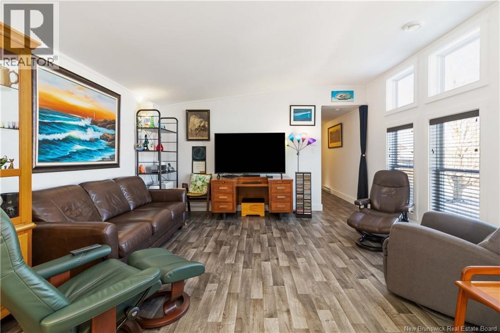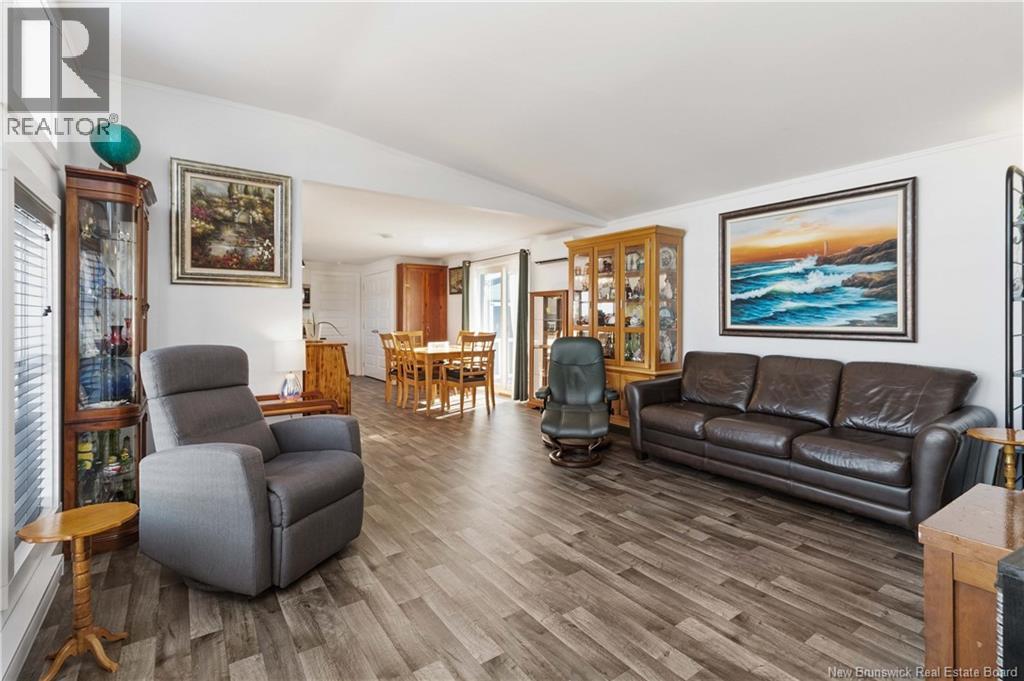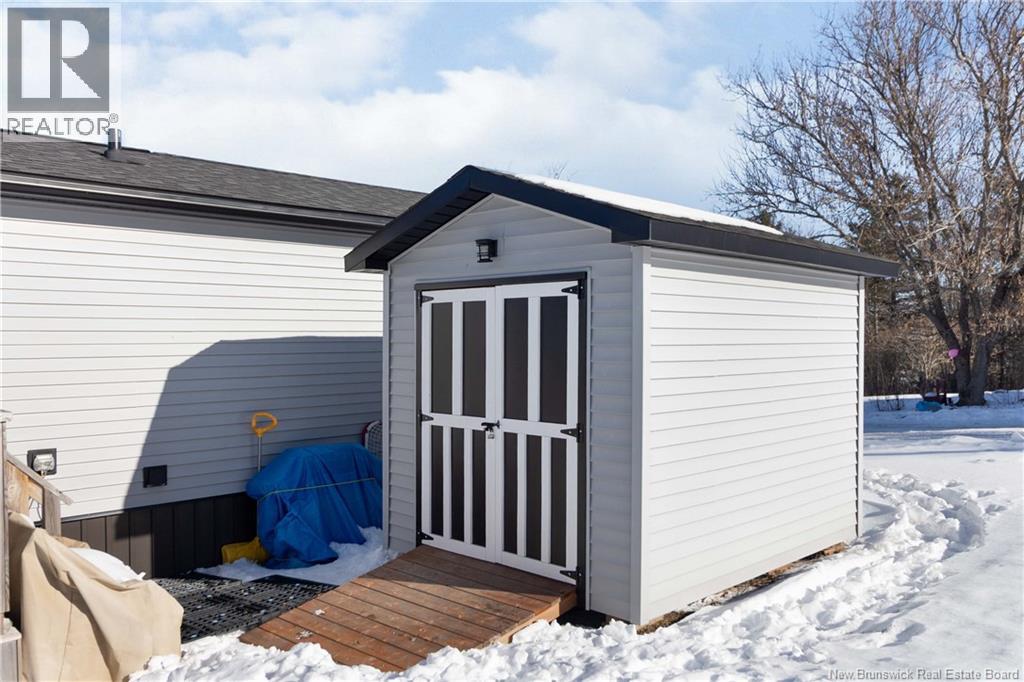 Wake up to unobstructed views of the Petitcodiac River. Built in 2020, this modern Maple Leaf home offers style, comfort, and energy-smart living in a quiet cul-de-sac with a dedicated green space. Step inside and youre greeted by abundant natural light pouring through oversized windows that frame the water. The kitchen features crisp white soft-close cabinetry, a central island, and stainless Whirlpool appliances, all included. A patio door off the dining area leads to the rear deckperfect for relaxing or entertaining. The living room impresses with its custom atrium ceiling and panoramic river views where eagles and wildlife are part of daily life. The primary bedroom continues the experience with large windows, another atrium ceiling, a walk-in closet, and a spa-inspired bath. Two additional well-proportioned bedrooms and a second full bathroom with deep soaker tub sit at the opposite end for privacy. Enjoy year-round comfort with a mini-split heat pump and equalized power costs of just $176/month. An 8' x 10' matching shed provides excellent exterior storage. Transferable LUX warranty to 2030. Flexible closing available. Contact your favourite REALTOR® to schedule your private viewing. (id:35613)