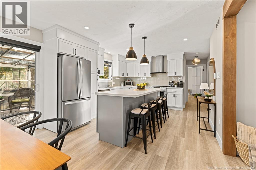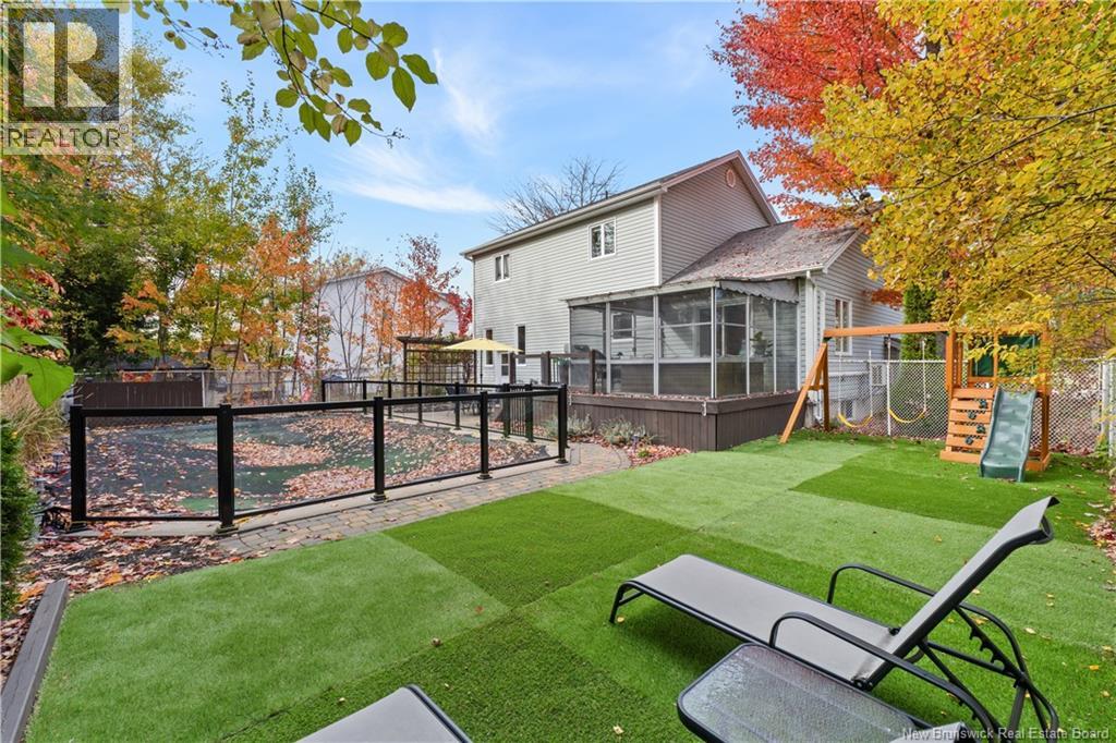 IN-LAW POTENTIAL | 4 BEDROOMS | IN-GROUND POOL | PRIVATE BACKYARD | OFFICE/PLAYROOM ON MAIN FLOOR | Welcome to this beautiful two-storey family home in one of Dieppes most desirable neighbourhoods! Enjoy great curb appeal and a fenced backyard with in-ground pool and new removable glass railingperfect for summer fun and added safety for kids. Inside, a bright foyer with built-in seating opens to a cozy living room with fireplace and a modern kitchen with ceiling-height cabinets, island seating, stainless appliances, and stylish lighting. The sunny seasonal sunroom overlooks the private, treed yard and pool. A powder room with laundry and a versatile office or playroom complete the main floor. Upstairs offers a spacious primary bedroom, two additional bedrooms, and a family bath with corner tub and separate shower. The finished basement adds even more living space with an entertainment area, fourth bedroom, full bath, and storage. A separate entrance leads to the basement, offering excellent in-law suite potential with kitchen rough-ins and ample spaceonly the kitchen and laundry hook-ups remain to be completed. Additional highlights include two mini-split heat pumps for efficient comfort and a roof less than 10 years old. Fantastic location close to schools, parks, and amenities! (id:35613)