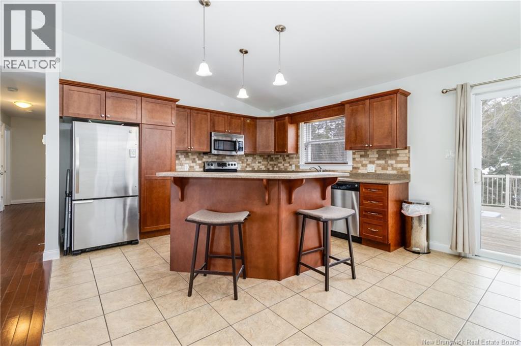Welcome to 65 Dawson Drive, located in the highly sought-after neighbourhood of Oromocto West. This well-maintained split entry home offers a functional layout and plenty of space for the whole family. Step inside to a spacious tiled foyer featuring a coat closet and a convenient built-in bench, perfect for putting on shoes and keeping things organized. Upstairs youll find a bright open-concept main living area, ideal for both everyday living and entertaining. The living room is equipped with a heat pump for year-round comfort, while the dining area flows seamlessly into the kitchen. The kitchen offers an abundance of cupboard space along with a large island with overhang, providing plenty of room for prep work and casual seating. The main level features three bedrooms, including a primary bedroom complete with its own full ensuite bathroom. Downstairs offers even more living space with a large rec room and a second heat pump, and a fourth bedroom, making it a comfortable spot for relaxing or gathering with family and friends. This level also includes a full bathroom with laundry for added convenience. Completing the home is an attached double garage, offering ample space for vehicles, storage, or hobbies. Situated in a family-friendly neighbourhood close to parks, schools, and amenities, this home is a fantastic opportunity in one of Oromoctos most desirable areas. (id:35613)