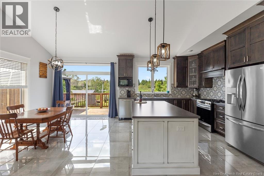 This exceptional custom-built 4-bedroom home is beautifully designed and ideally located just minutes from amenities with easy access to the highway, making trips to Moncton, Sackville, or PEI a breeze. Set on over a 1/4 acre with stunning water views, youll enjoy breathtaking sunsets from your expansive private back deck with covered gazebo. Enter through a spacious foyer with a 2-pc powder room, then ascend a few steps into the open-concept kitchen, dining, and living areas. High cathedral ceilings, porcelain tile, and hardwood floors create a bright and airy atmosphere. The kitchen features a large island, pantry, stylish backsplash, and propane stove. The dining area opens to the backyard, perfect for enjoying the view. The living room is inviting with a cozy wood fireplace insert for winter nights and accentuated with beautiful brick floor to ceiling. The amazing primary boasts a walk-in closet and a 4-pc ensuite with a custom tile shower and soaker tub. The second bedroom is cozy with beautiful windows adding loads of natural light. The lower level features two spacious bedrooms perfect for a family room, a 3-pc bath, laundry room, office/den, and ample storage. The home is equipped with central air and heating for year-round comfort. The property is beautifully landscaped with privacy, water views, and a storage barn. A large double attached garage offers convenient parking and extra storage. This elegant home truly has it all. A must-see! Call today for your viewing! (id:35613)