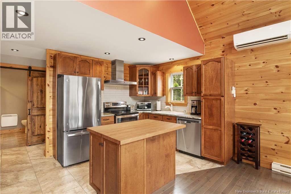 Sitting on a gorgeous 1.8-acre lot in the heart of the Memramcook Valley, this exceptional property offers the perfect blend of charm, space, and comfort everything you've been dreaming of. Step inside to discover a warm, open-concept layout with a beautiful wood-accented interior. The main floor features a spacious living room with soaring cathedral ceilings and a stunning propane fireplace, a bright dining area with patio doors leading to the outdoors, and a stylish kitchen complete with backsplash, stainless steel appliances, and a walk-in pantry. This level also includes a full bathroom and a comfortable bedroom. Upstairs, you'll find additional bedroom ( with lots of room to put 3 beds ) and a convenient half bath ideal for family or guests. Outside, enjoy the privacy of mature trees and the versatility of a large 22x24 detached garage perfect for storage, hobbies, or your workshop needs and is completed with a second smaller garage (14x20) perfect to park your ATV , Both interior of garage are finished Dont miss this rare opportunity to own a slice of paradise in Memramcook. Call today for more details! (id:35613)