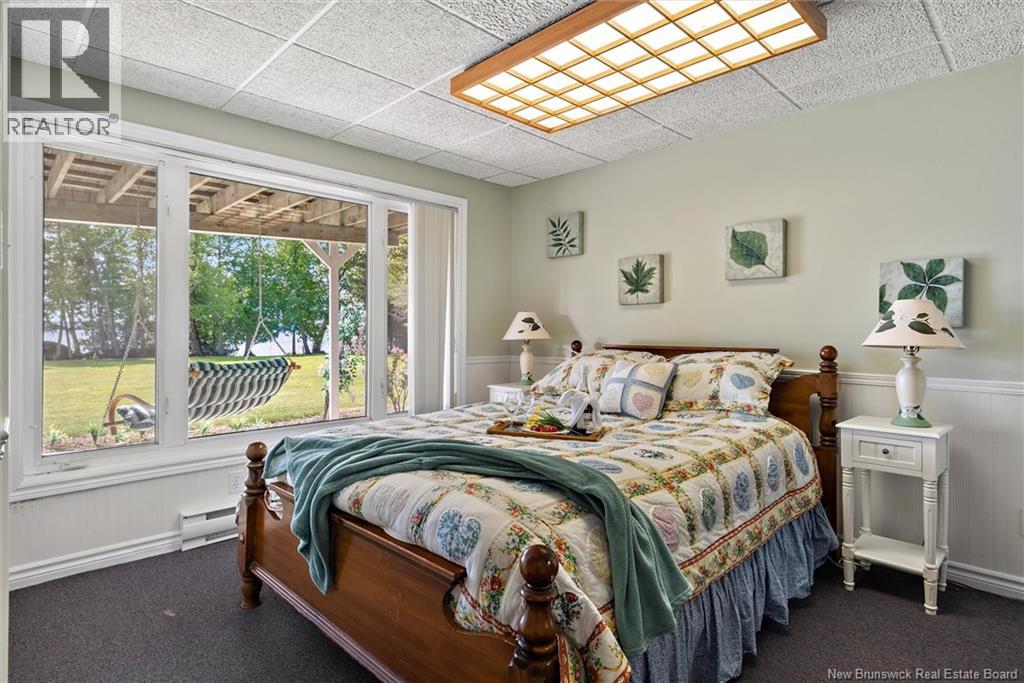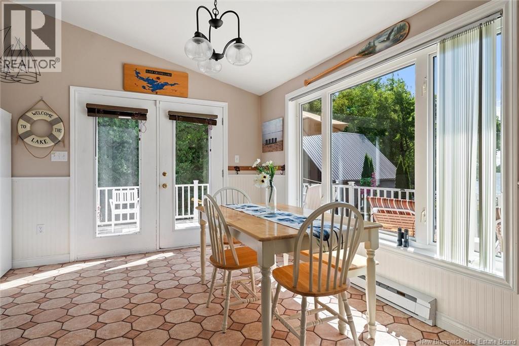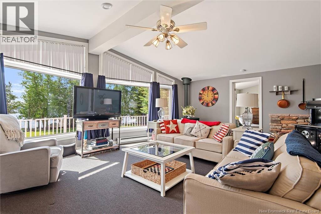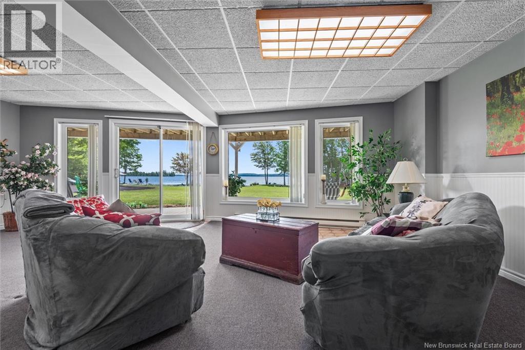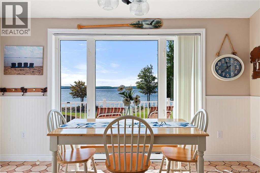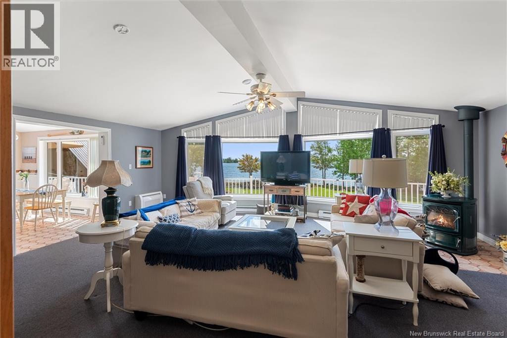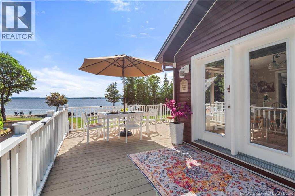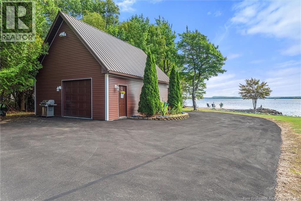 Set on 1.09 acres along the shores of Grand Lake, this exceptional waterfront property offers breathtaking views stretching across the international border. With 2,659 sq. ft. of thoughtfully designed living space, this home is perfectly suited for both relaxed living and entertaining. The main level features a spacious living area filled with natural light, a well-appointed kitchen, dining area, and a walk-in pantry. A large primary bedroom and full 4-piece bathroom complete this level, while a stunning 776 sq. ft. balcony off the living room provides the perfect place to take in the panoramic water views. The walkout lower level offers four additional bedrooms, a full bathroom, and a generous family roomideal for hosting guests or accommodating a growing family. Large windows throughout ensure water views from nearly every room. Comfort is enhanced year-round with two mini-split heat pumps, one on each level. Step outside to enjoy the 443 sq. ft. patio, private beach, dock area, and ample space for a seaplane. A detached garage adds convenience, while the expansive lot provides privacy and room to enjoy the outdoors. A rare opportunity to own a true waterfront retreat with unmatched views and lifestyle potential. (id:35613)
