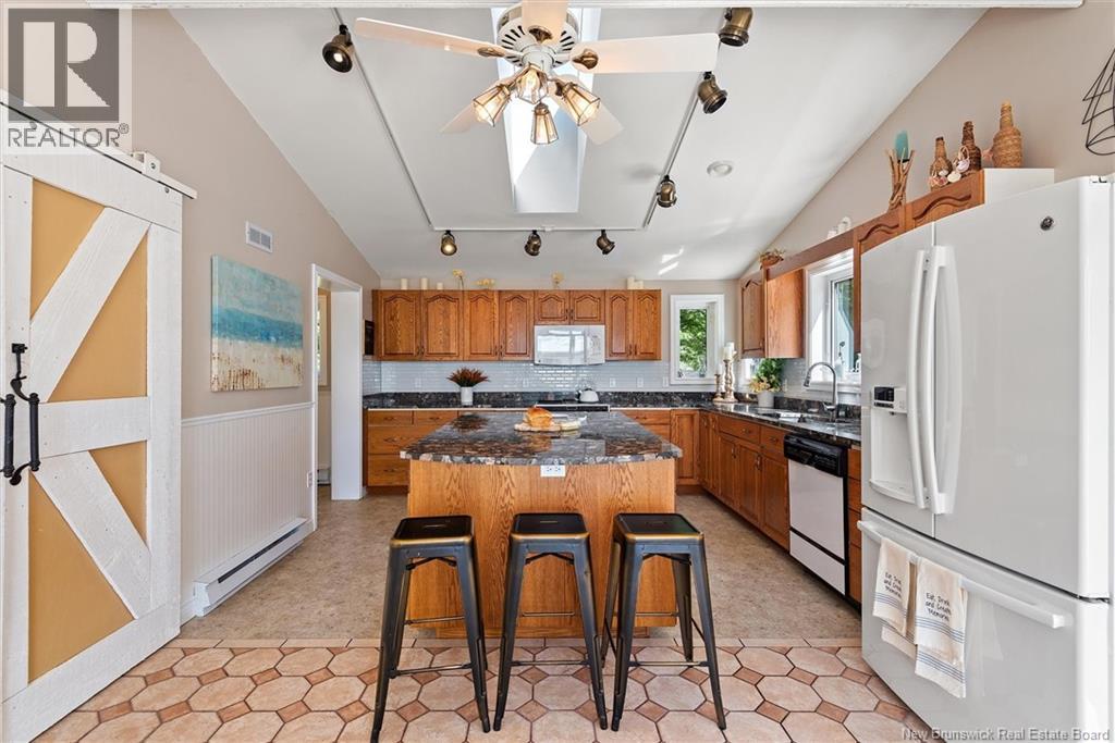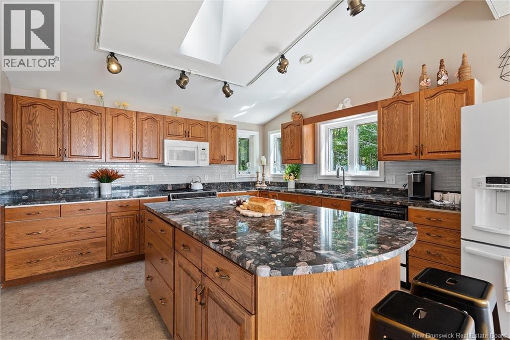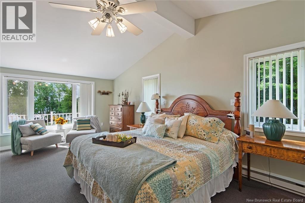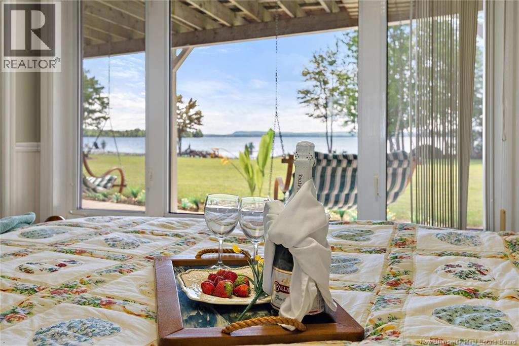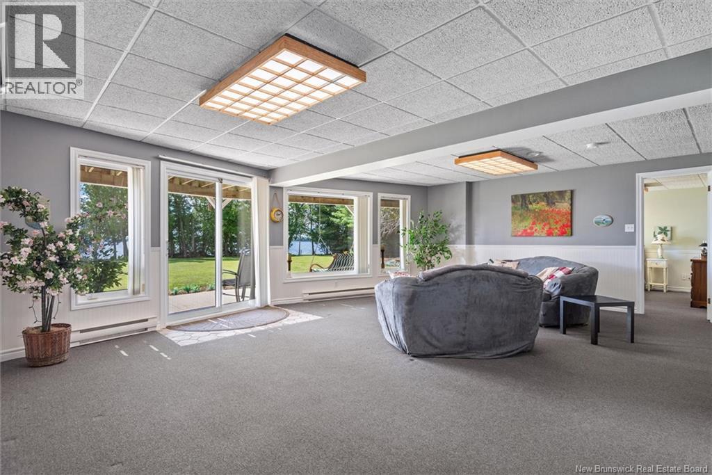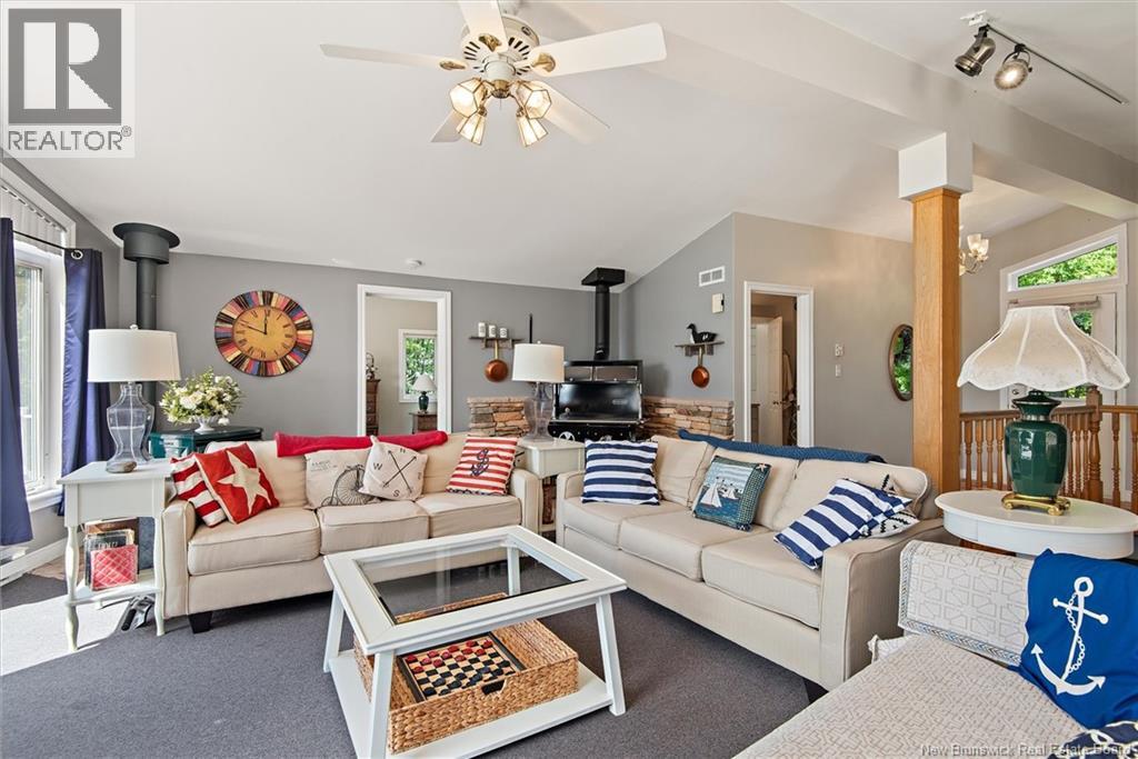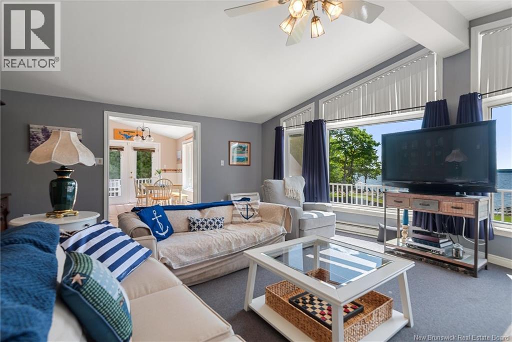 Set on 1.09 acres along the shores of Grand Lake, this exceptional waterfront property offers breathtaking views stretching across the international border. With 2,659 sq. ft. of thoughtfully designed living space, this home is perfectly suited for both relaxed living and entertaining. The main level features a spacious living area filled with natural light, a well-appointed kitchen, dining area, and a walk-in pantry. A large primary bedroom and full 4-piece bathroom complete this level, while a stunning 776 sq. ft. balcony off the living room provides the perfect place to take in the panoramic water views. The walkout lower level offers four additional bedrooms, a full bathroom, and a generous family roomideal for hosting guests or accommodating a growing family. Large windows throughout ensure water views from nearly every room. Comfort is enhanced year-round with two mini-split heat pumps, one on each level. Step outside to enjoy the 443 sq. ft. patio, private beach, dock area, and ample space for a seaplane. A detached garage adds convenience, while the expansive lot provides privacy and room to enjoy the outdoors. A rare opportunity to own a true waterfront retreat with unmatched views and lifestyle potential. (id:35613)