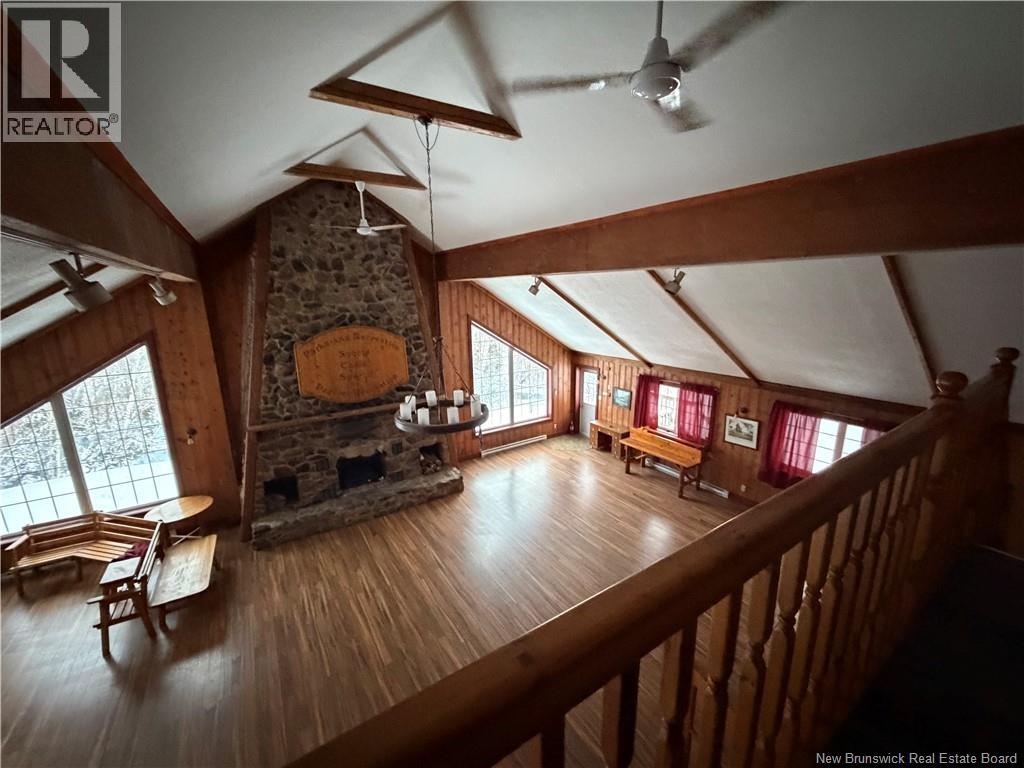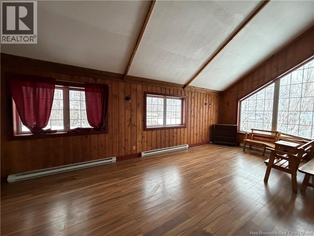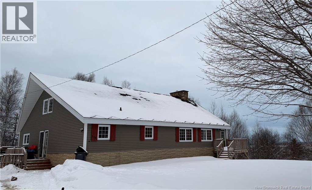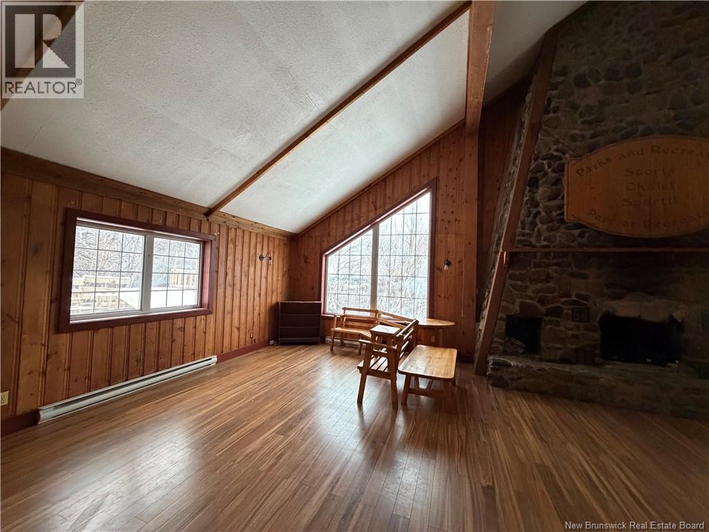 Welcome to the charming and historical Bathurst Golf Chalet! Set high atop the hill with spectacular views over the city and the Bathurst Basin this property is special and certainly one of a kind, sure to attract a lot of attention. The great room has a stunning stone fireplace ( not in use, condition unknown), roof shingles were replaced in recent years and the interior ceiling repainted, PVC windows, loft area provides a grand master bedroom overlooking this great room with French doors and a staircase. The main floor has an additional bedroom with 2pc powder room (ensuite) plus a large main bathroom with tub insert, laundry area, kitchen and large entry area with custom wood walls and ceramic flooring. Patios/decking were re done by this seller also. Basement is large and insulated with spray foam offering a heat pump also to keep it heated and dry.. an outside door also making it easily accessible for storage. Heat pump also in the kitchen upstairs. Other electric baseboard heaters also and a 200 amp electrical panel with breakers. Lots of opportunity here to continue renovating and do more with this place.. it would make an amazing airbnb project or a family home for someone. With a 1 acre lot it allows plenty of room to build a garage and garden and enjoy your outdoor space also. Golfing your thing? You are practically on the Squire Green golf course! Great location to enjoy skiing, golfing and the outdoors year round! Please note roof shingles (dark grey). (id:35613)