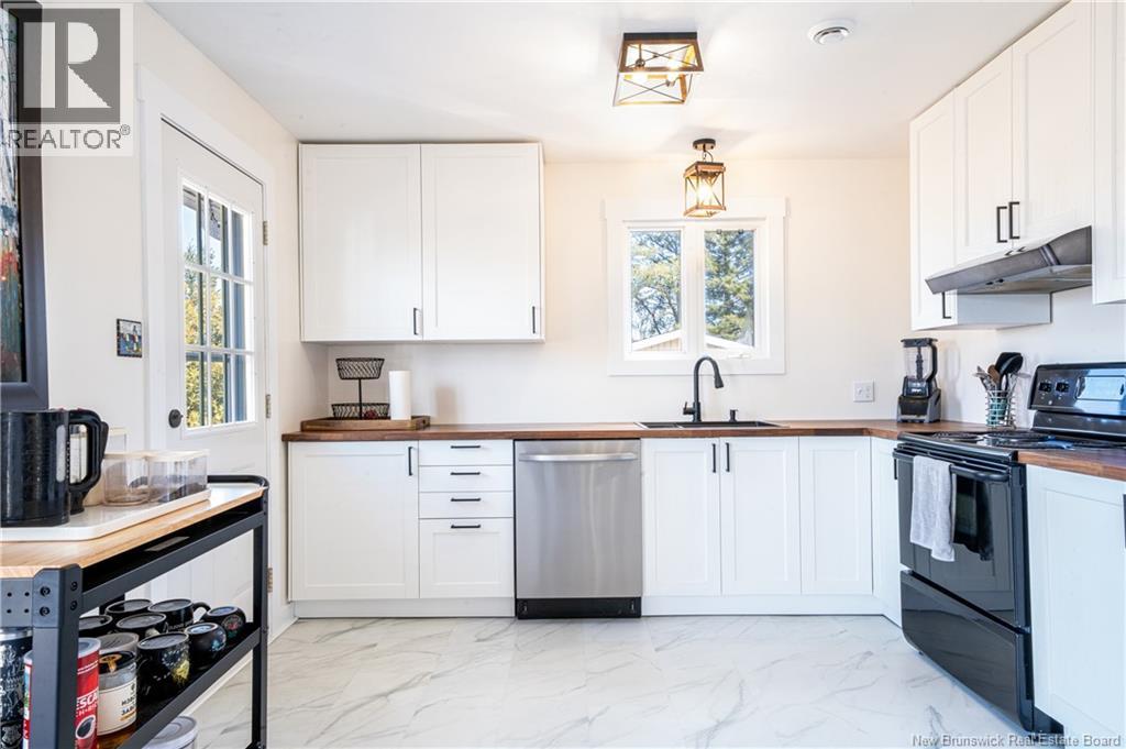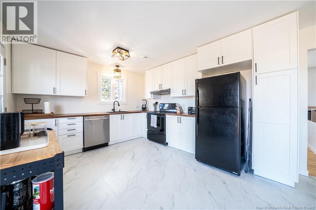 Welcome to 74 Cartier, a beautifully updated 3+1 bedroom, 2 bathroom raised bungalow set on a landscaped lot just minutes from the beach! The main level features a brand-new white IKEA Enköping eat-in kitchen, along with new doors, baseboards, and wainscot-style mouldings throughout the living room, hallway, and three bedrooms. The refreshed main bath includes a new vanity, shower head, mirror, ceramic tile, and fresh paint. The fully finished basement adds exceptional living space with a new bedroom (closet and large egress window), family room, kitchenette with IKEA Knoxhult cabinetry, and a full bathroom/laundry featuring a custom vanity, new toilet, tiles and glass-door corner shower. A pot-bellied wood stove featured in the family room creates the perfect space for relaxing or entertaining. Outside, enjoy a fenced, great-sized lot in a quiet, family-friendly neighbourhood. Two outbuildings (10x12 and 16x8), raised and decorative gardens, and two gravel pads offer flexibility for a playground, pool, or hot tub. In 2023, the roof was completely updated, including a new shape and shingles. A 5-7 minute drive from amenities, including grocery stores, hardware stores, restaurants, drive-in theatres, and Parlee Beach, hosting the warmest water north of the Carolinas! 20 minutes to Moncton, 40 minutes to Confederation Bridge, 40 minutes to Nova Scotia. Open house Saturday 11-1, Sunday 2-4. (id:35613)