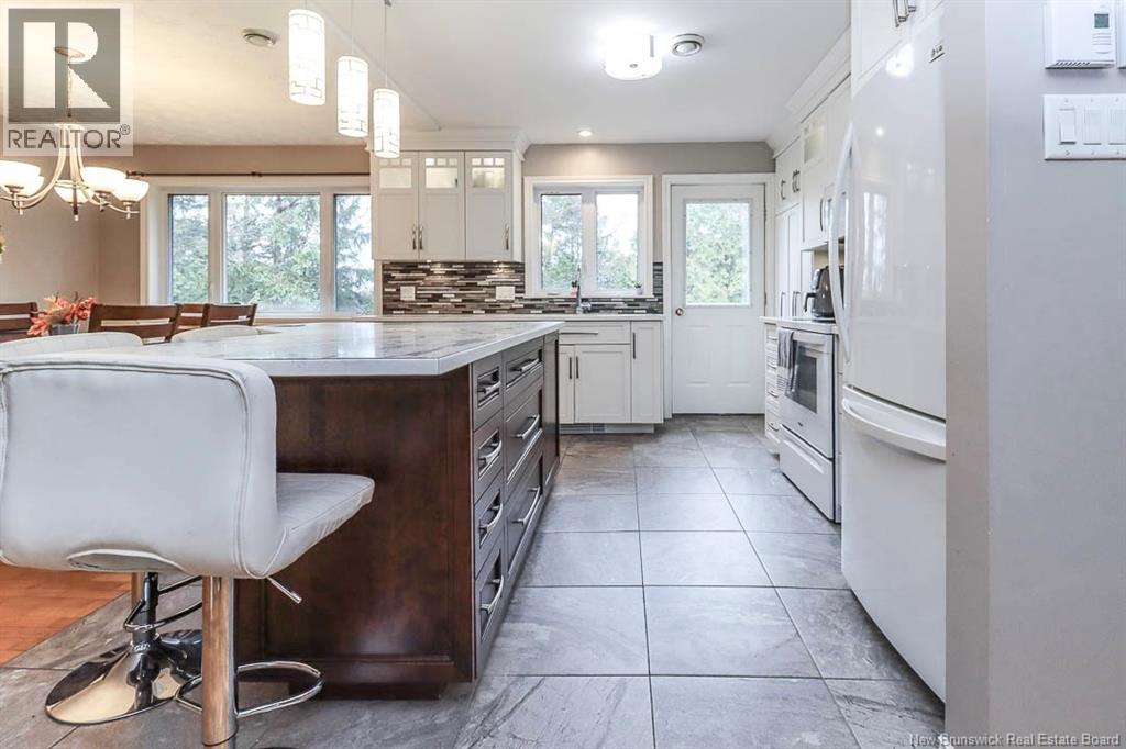 Welcome to this spacious and family-friendly split entry in one of Quispamsis most convenient and sought-after neighbourhoods! Tucked on a private lot, this home features open-concept living room, dining area and a beautiful Avondale kitchen with bright white cabinetry and a huge island. The primary bedroom includes its own updated ensuite and walk-in closet. Two additional bedrooms and an updated full bath complete the main level. The lower level is full of natural light and offers plenty of additional space with a large, bright family room with wood-stove, an extra bedroom, and a versatile bonus room perfect for a playroom, home office, gym or 5th bedroom if needed. Theres also direct access from the basement into the oversized double garage through a mudroom - great for busy family life. Enjoy outdoor living on the back deck surrounded by privacy. Close to the Qplex, walking trails and all amenities this is a wonderful place to call home. Featuring custom blinds, great storage, a private backyard, and a fantastic location! (id:35613)