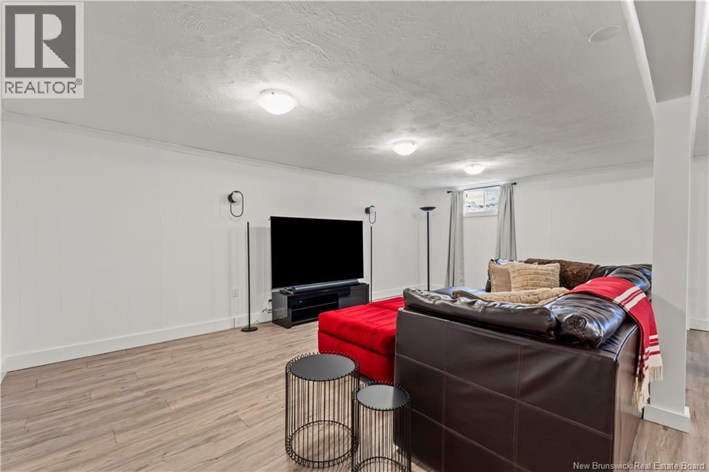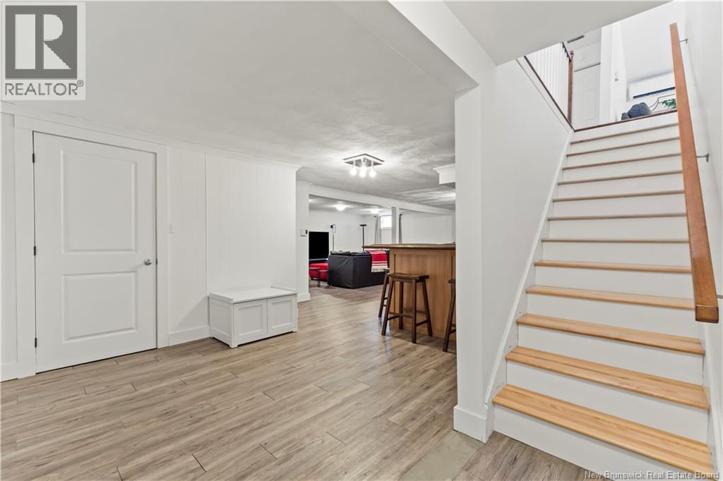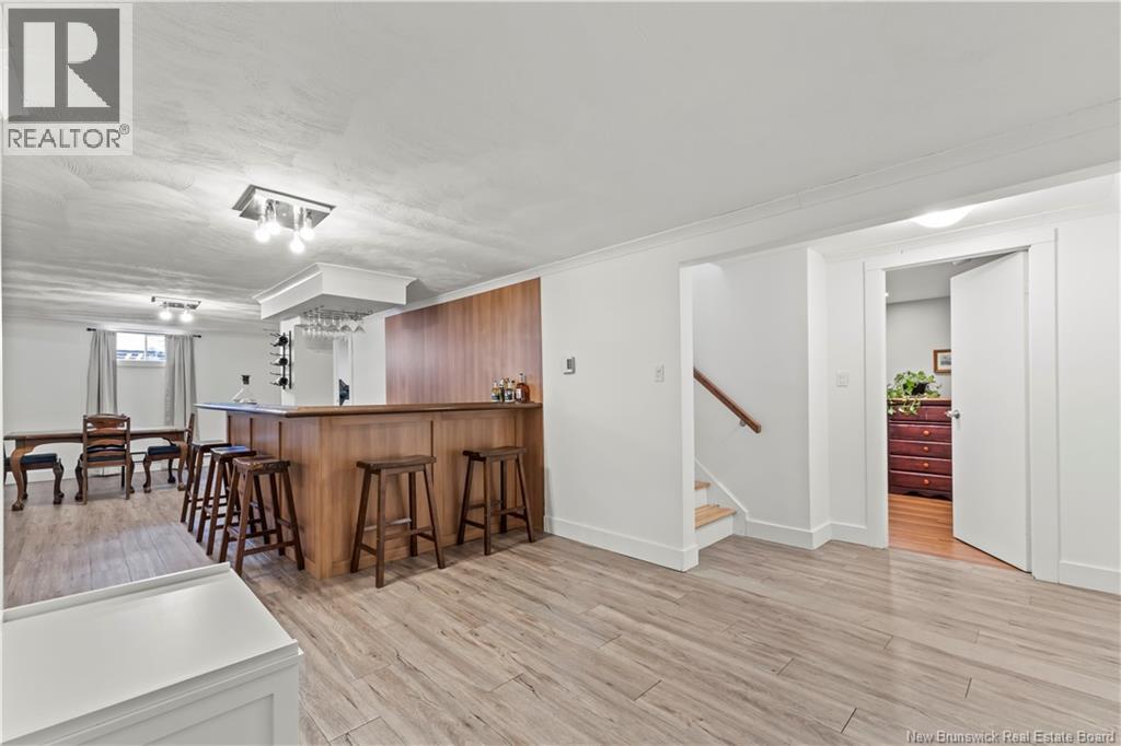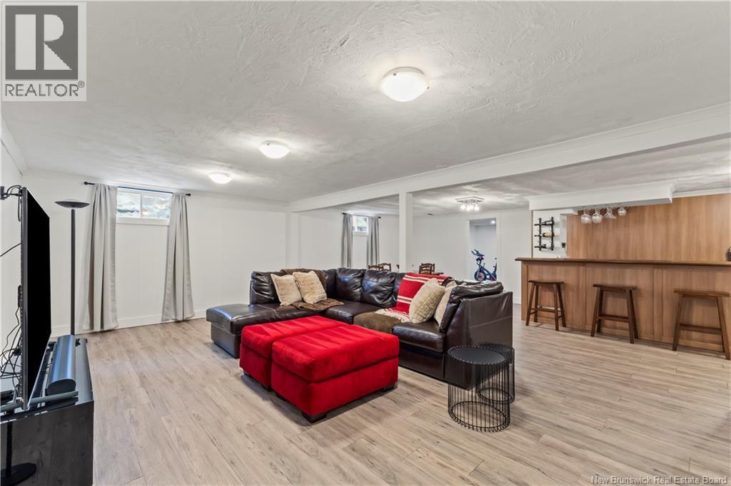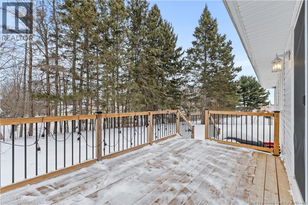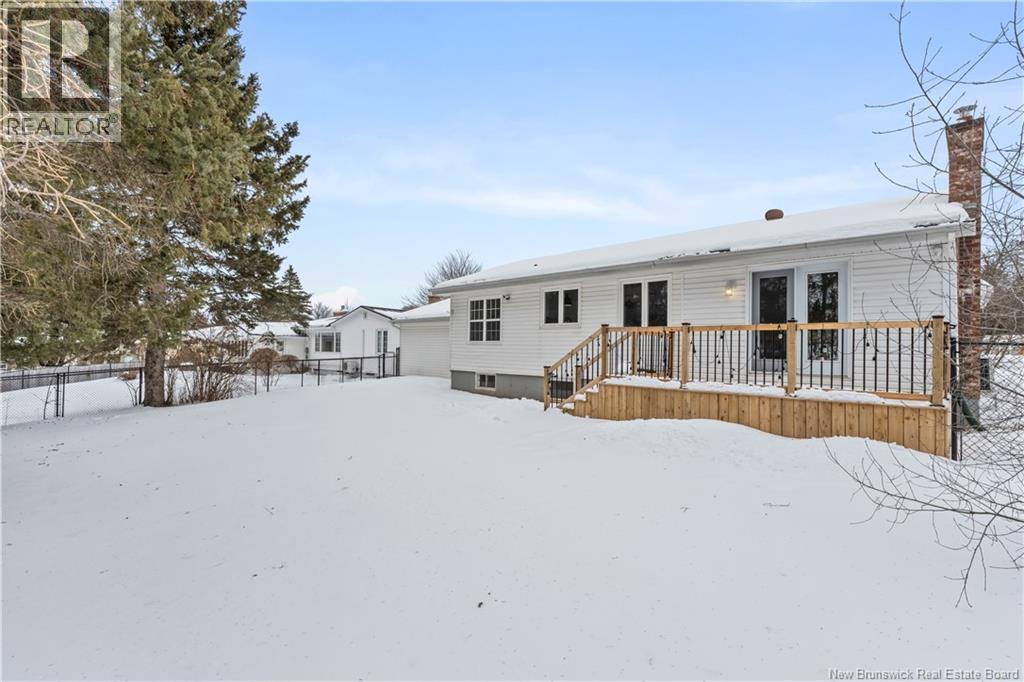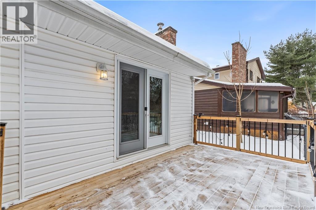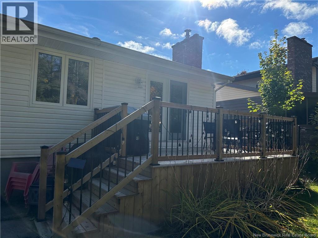 Beautifully UPDATED 4-BEDROOM bungalow offering a functional, well-designed layout, STYLISH FINISHES, and a FINISHED BASEMENT all set on a PRIVATE, FENCED LOT surrounded by MATURE TREES for added privacy. The bright main level features a welcoming living room with HARDWOOD flooring and LARGE WINDOWS that fill the space with natural light. The spacious kitchen offers AMPLE CABINETRY and counter space, flowing seamlessly into the dining area. Just off the dining space, a cozy FAMILY ROOM with FIREPLACE provides an inviting secondary living area and direct access to the BRAND NEW BACKYARD DECK with modern black railings, creating an easy indoor-outdoor connection. The main floor also includes THREE comfortable bedrooms and a renovated bathroom with MODERN FIXTURES and a TILED shower/tub. The fully finished lower level expands your living space with a LARGE REC ROOM, beautiful CUSTOM BAR with seating and wine storage, HOME GYM area, flexible bonus room, and a SECOND FULL BATHROOM with tiled walk-in shower and integrated LAUNDRY. An attached DOUBLE GARAGE and paved driveway complete this move-in-ready home, ideally located in Monctons top residential neighbourhood with underground electrical, and very close to schools and amenities. Recent upgrades include: Roof (2018), new kitchen cabinets and hardware, hardwood stairs, cement walkway in front, new mini-split(2024), fresh paint throughout, new electrical panel, new baseboards upstairs! Call today for your private showing! (id:35613)