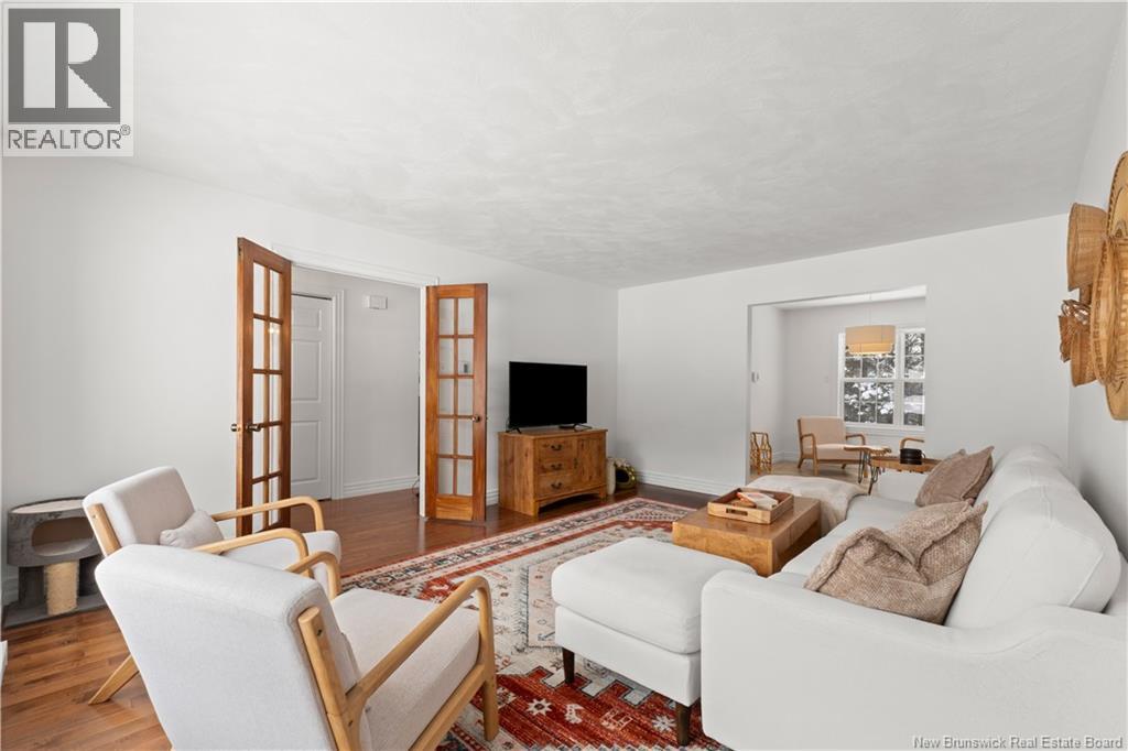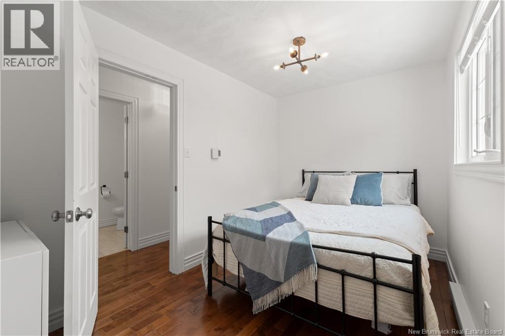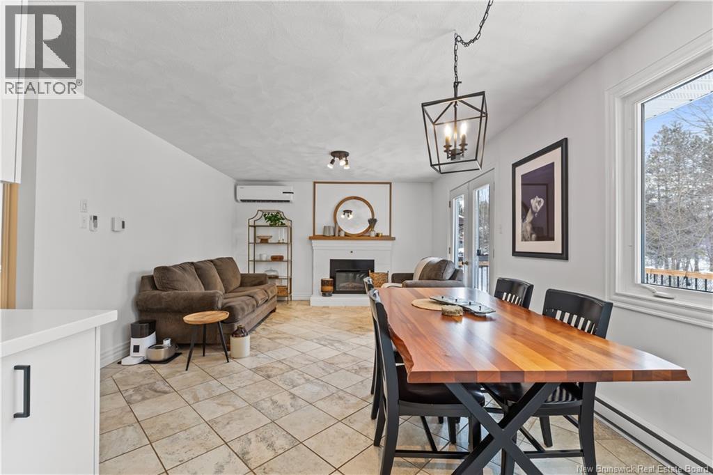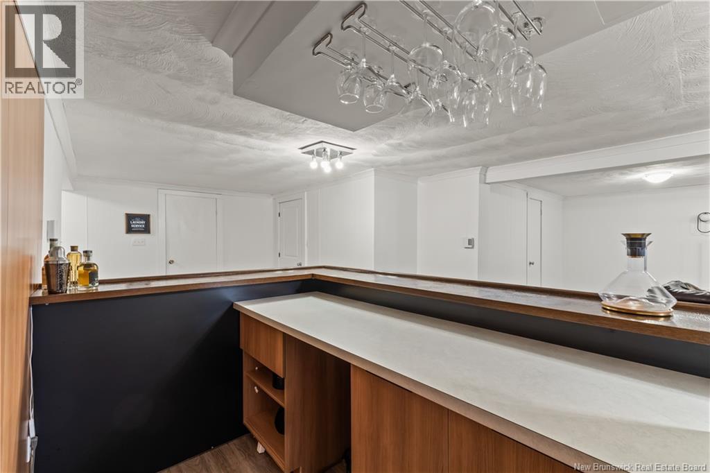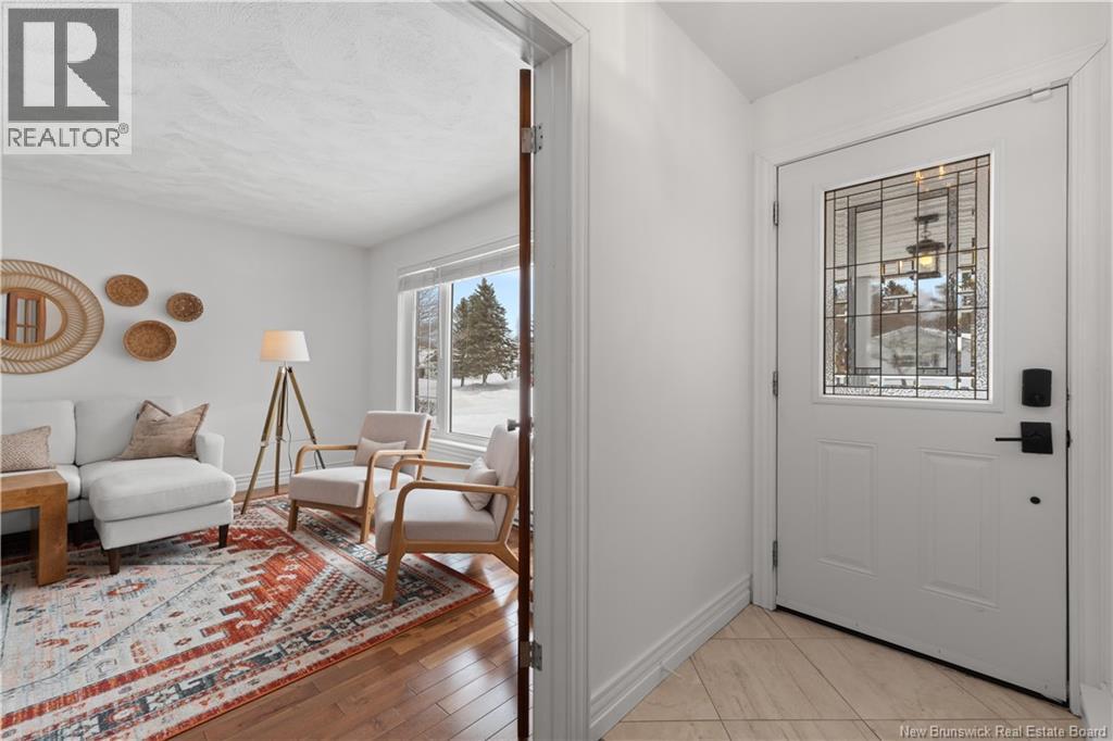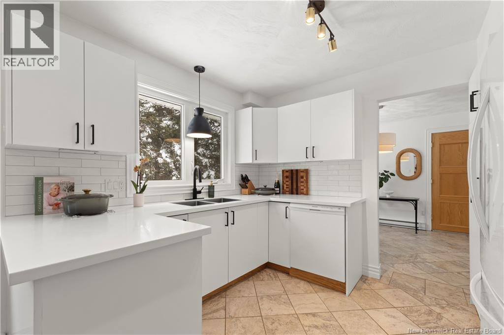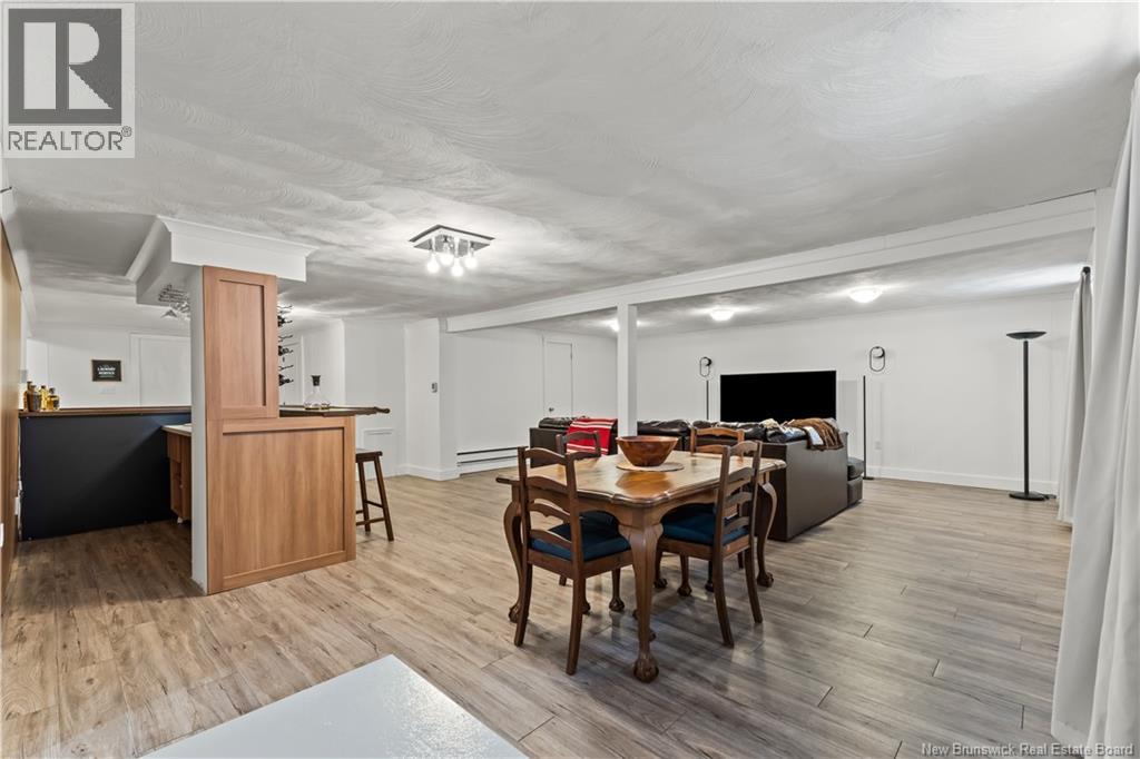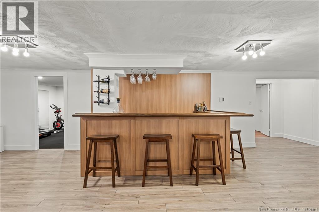 Beautifully UPDATED 4-BEDROOM bungalow offering a functional, well-designed layout, STYLISH FINISHES, and a FINISHED BASEMENT all set on a PRIVATE, FENCED LOT surrounded by MATURE TREES for added privacy. The bright main level features a welcoming living room with HARDWOOD flooring and LARGE WINDOWS that fill the space with natural light. The spacious kitchen offers AMPLE CABINETRY and counter space, flowing seamlessly into the dining area. Just off the dining space, a cozy FAMILY ROOM with FIREPLACE provides an inviting secondary living area and direct access to the BRAND NEW BACKYARD DECK with modern black railings, creating an easy indoor-outdoor connection. The main floor also includes THREE comfortable bedrooms and a renovated bathroom with MODERN FIXTURES and a TILED shower/tub. The fully finished lower level expands your living space with a LARGE REC ROOM, beautiful CUSTOM BAR with seating and wine storage, HOME GYM area, flexible bonus room, and a SECOND FULL BATHROOM with tiled walk-in shower and integrated LAUNDRY. An attached DOUBLE GARAGE and paved driveway complete this move-in-ready home, ideally located in Monctons top residential neighbourhood with underground electrical, and very close to schools and amenities. Recent upgrades include: Roof (2018), new kitchen cabinets and hardware, hardwood stairs, cement walkway in front, new mini-split(2024), fresh paint throughout, new electrical panel, new baseboards upstairs! Call today for your private showing! (id:35613)