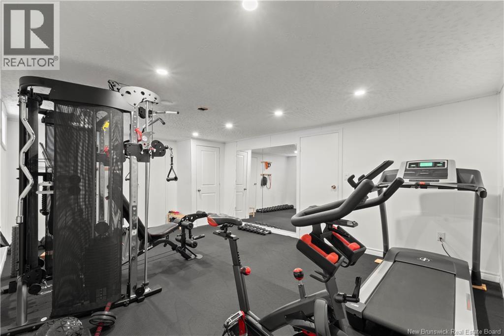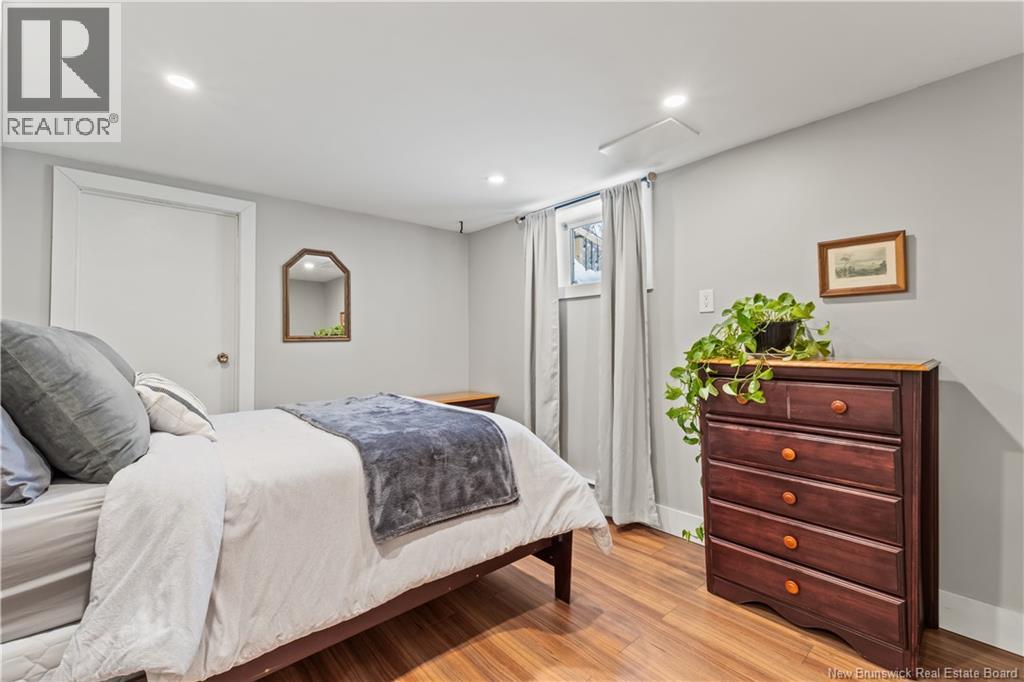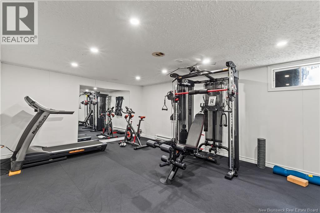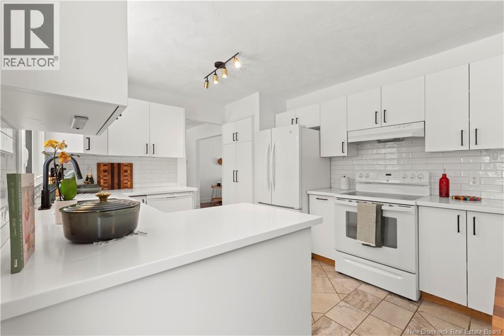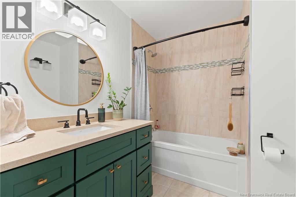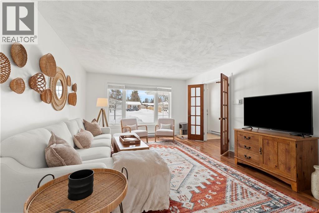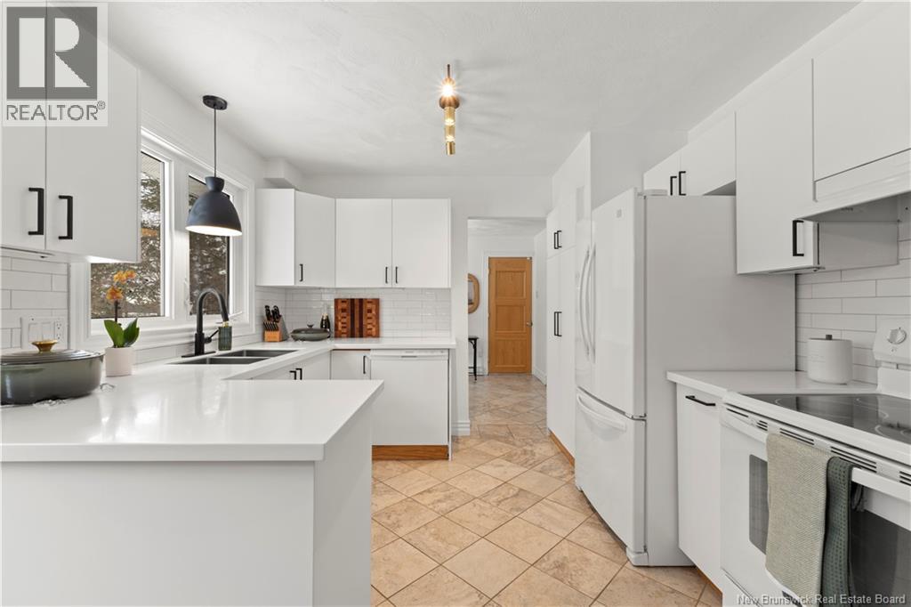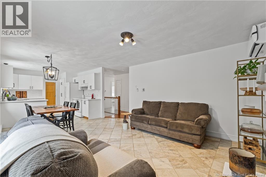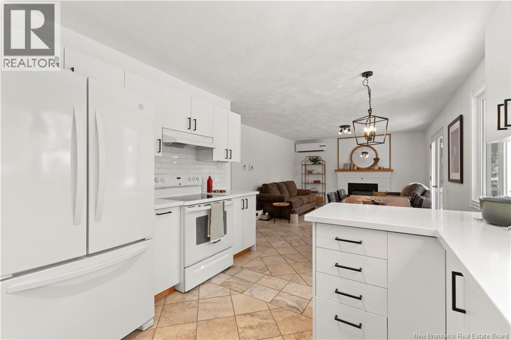 Beautifully UPDATED 4-BEDROOM bungalow offering a functional, well-designed layout, STYLISH FINISHES, and a FINISHED BASEMENT all set on a PRIVATE, FENCED LOT surrounded by MATURE TREES for added privacy. The bright main level features a welcoming living room with HARDWOOD flooring and LARGE WINDOWS that fill the space with natural light. The spacious kitchen offers AMPLE CABINETRY and counter space, flowing seamlessly into the dining area. Just off the dining space, a cozy FAMILY ROOM with FIREPLACE provides an inviting secondary living area and direct access to the BRAND NEW BACKYARD DECK with modern black railings, creating an easy indoor-outdoor connection. The main floor also includes THREE comfortable bedrooms and a renovated bathroom with MODERN FIXTURES and a TILED shower/tub. The fully finished lower level expands your living space with a LARGE REC ROOM, beautiful CUSTOM BAR with seating and wine storage, HOME GYM area, flexible bonus room, and a SECOND FULL BATHROOM with tiled walk-in shower and integrated LAUNDRY. An attached DOUBLE GARAGE and paved driveway complete this move-in-ready home, ideally located in Monctons top residential neighbourhood with underground electrical, and very close to schools and amenities. Recent upgrades include: Roof (2018), new kitchen cabinets and hardware, hardwood stairs, cement walkway in front, new mini-split(2024), fresh paint throughout, new electrical panel, new baseboards upstairs! Call today for your private showing! (id:35613)