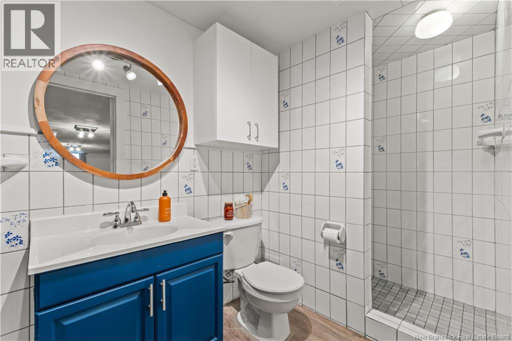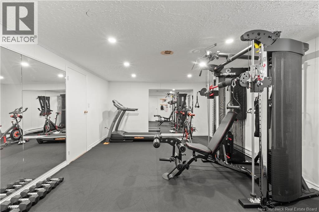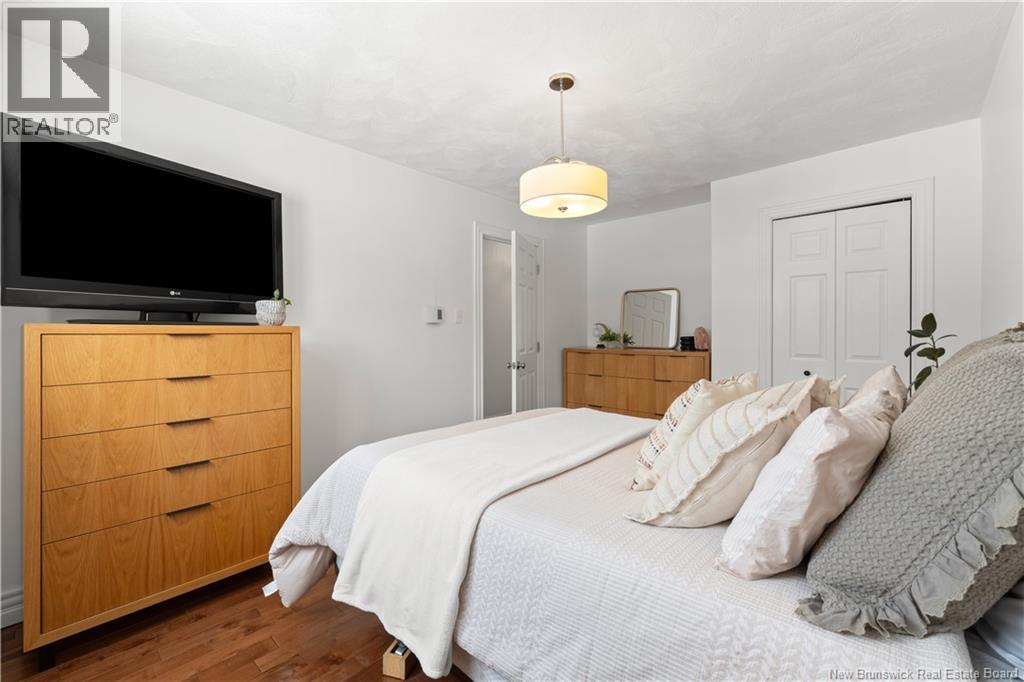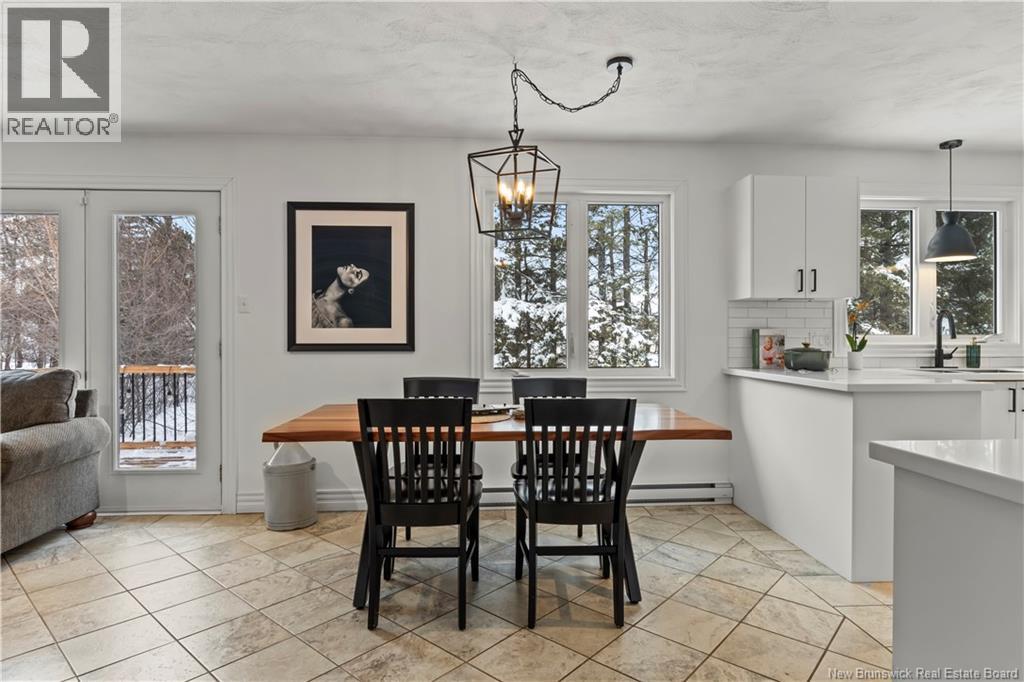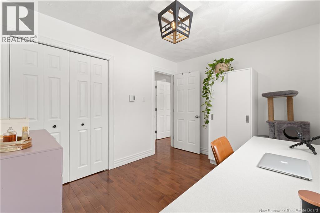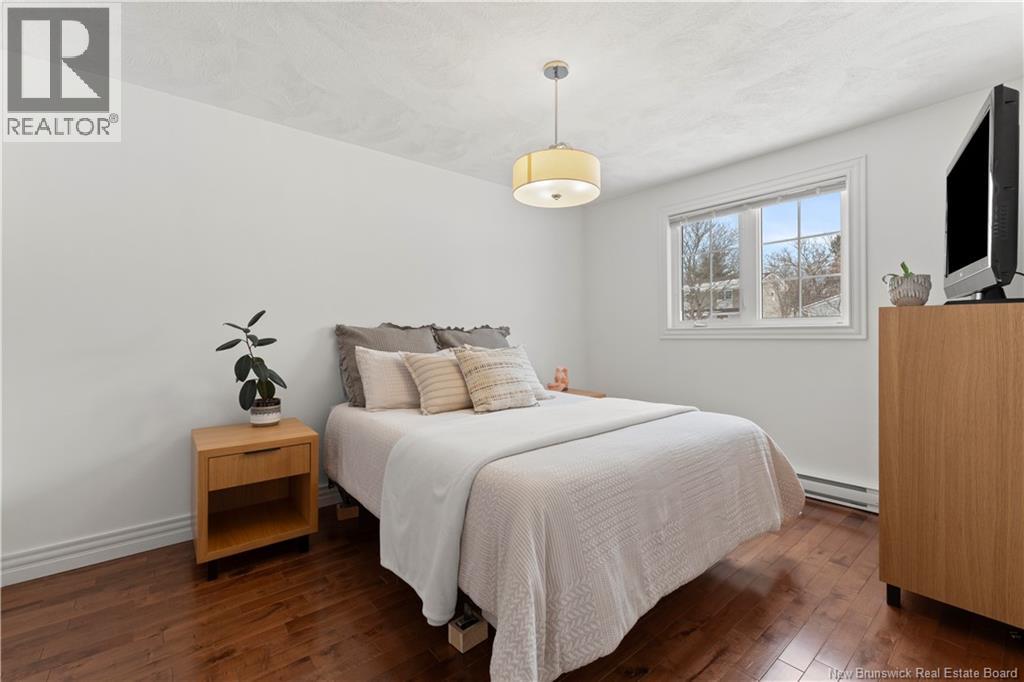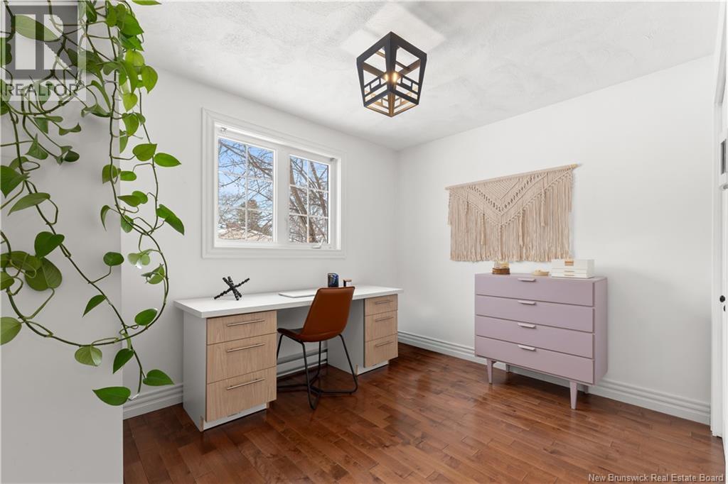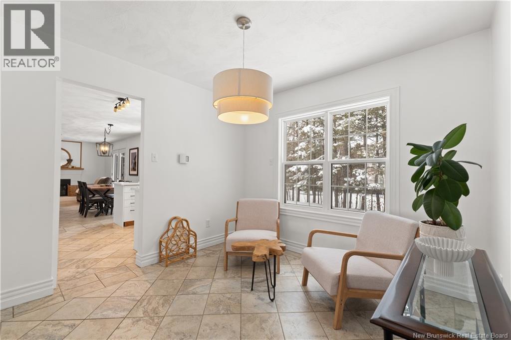 Beautifully UPDATED 4-BEDROOM bungalow offering a functional, well-designed layout, STYLISH FINISHES, and a FINISHED BASEMENT all set on a PRIVATE, FENCED LOT surrounded by MATURE TREES for added privacy. The bright main level features a welcoming living room with HARDWOOD flooring and LARGE WINDOWS that fill the space with natural light. The spacious kitchen offers AMPLE CABINETRY and counter space, flowing seamlessly into the dining area. Just off the dining space, a cozy FAMILY ROOM with FIREPLACE provides an inviting secondary living area and direct access to the BRAND NEW BACKYARD DECK with modern black railings, creating an easy indoor-outdoor connection. The main floor also includes THREE comfortable bedrooms and a renovated bathroom with MODERN FIXTURES and a TILED shower/tub. The fully finished lower level expands your living space with a LARGE REC ROOM, beautiful CUSTOM BAR with seating and wine storage, HOME GYM area, flexible bonus room, and a SECOND FULL BATHROOM with tiled walk-in shower and integrated LAUNDRY. An attached DOUBLE GARAGE and paved driveway complete this move-in-ready home, ideally located in Monctons top residential neighbourhood with underground electrical, and very close to schools and amenities. Recent upgrades include: Roof (2018), new kitchen cabinets and hardware, hardwood stairs, cement walkway in front, new mini-split(2024), fresh paint throughout, new electrical panel, new baseboards upstairs! Call today for your private showing! (id:35613)