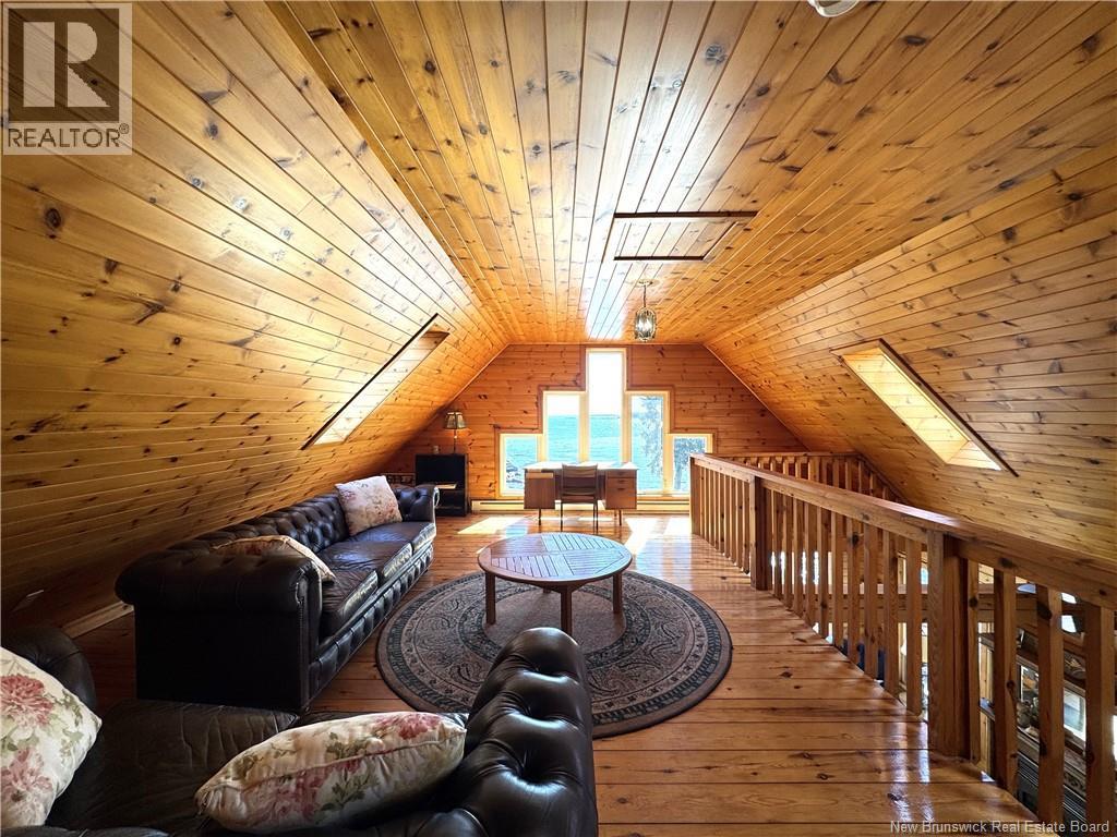 Located in Seeley's Cove between St. George and Saint John, near New River Beach, is this 3 bedroom, three bath home with a double attached garage overlooking the ocean. The views from this property are breathtaking and the cool salt breeze off the water is always refreshing. Built circa 1985, the home is a post and beam build, with exposed beams and extensive wood work creating a warm comfortable vibe that blends very well with this private and wooded oceanfront setting. With the metal roof and beautiful cedar shingles, this property should be maintenance free for many years to come. As picturesque as the setting is, the interior of the home is stunning. On the main level, the open concept kitchen with large island is open to the dining room and the living room, where there is a walk out to a large deck. Also on this level is a bedroom, 2 full baths with a laundry station and a great room. Upstairs in the main house is a bedroom with a private entrance to the roof top deck, rec room, and a full bath. The loft over the garage, with another private entrance to the rooftop deck, is a grand spacious bedroom. The large windows, skylights, and upper and lower decks provide ocean views that most only dream about. While this is a beautiful family home, it does offer potential for rental, as well as room for extended family members. This waterfront property should be seen to be truly appreciated. Call today for additional information or to schedule a private viewing. (id:35613)