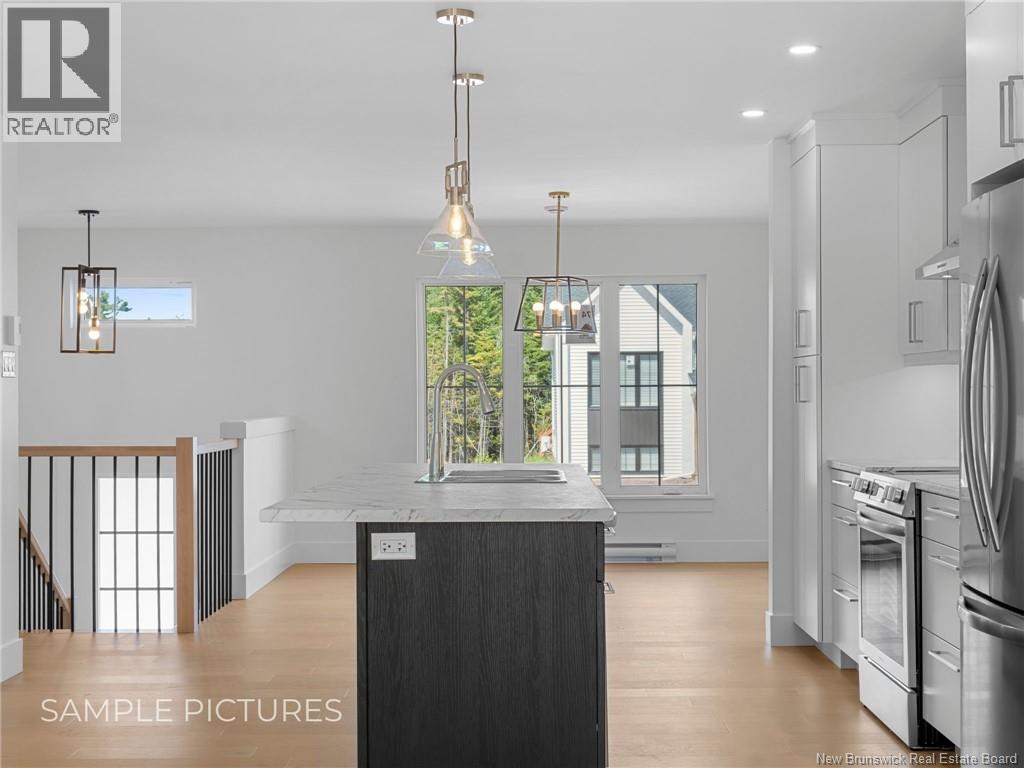 BRAND NEW CONSTRUCTION | 3 BEDROOMS | PRIVATE BACKYARD. Located on a desirable lot in Dieppe with a private wooded backyard, this MIDDLE UNIT townhome offers an inviting OPEN-CONCEPT main floor, perfect for both entertaining and everyday living. The modern kitchen features a SPACIOUS ISLAND, ample storage, and included appliances, blending functionality with contemporary style. Warm HARDWOOD FLOORING flows seamlessly from the dining area to the living room, which opens through double patio doors onto a PRIVATE PATIO with wooded views, creating effortless indoor-outdoor living. A convenient 2-piece bathroom completes the main level. The lower level boasts THREE bright bedrooms filled with natural light, a full 5-piece bathroom, and a private LAUNDRY ROOM. This home will be move-in ready by mid-November. With all APPLIANCES, a PAVED DRIVEWAY, and LANDSCAPING all included, this property offers a truly TURN-KEY ownership experience. (id:35613)