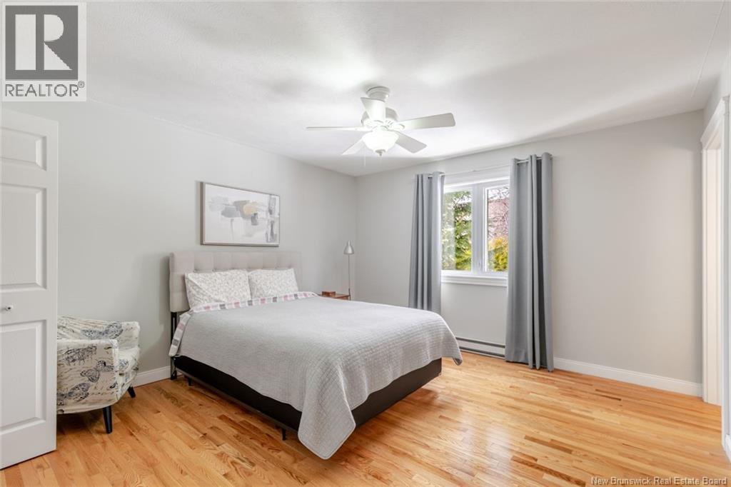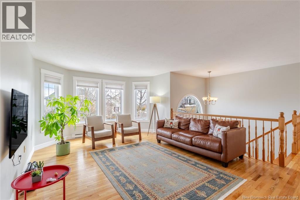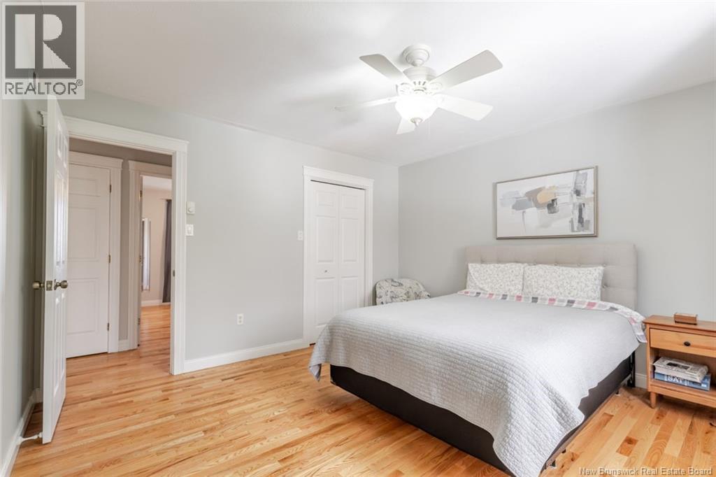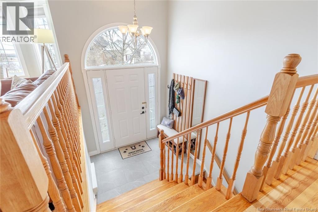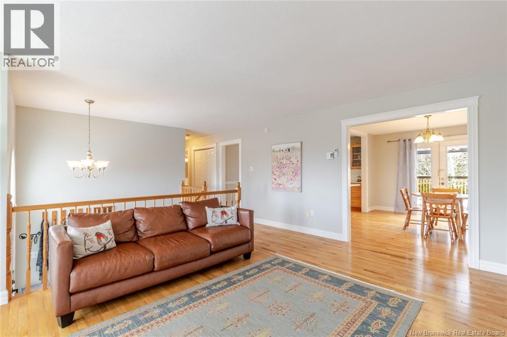 Beautifully updated home in a highly sought-after neighborhood with stunning Saint John River views, great curb appeal, and a private setting surrounded by mature trees. The main floor offers 3 bedrooms, including a primary with walk-in closet and 3-piece ensuite. The renovated kitchen features quartz countertops, maple cabinetry, stainless steel appliances, and a large island, opening to a bright dining area with access to a private deck. A bright and spacious living room with oversized windows and a charming turret showcases the river views. The fully finished lower level includes a family room, flex space, laundry, and a mudroom with garage access. Upgrades: hardwood flooring on the main level, laminate flooring on the lower level, two heat pumps (approx. 4 years old), newer appliances, upgraded attic insulation, and a brand-new private deck (2025). Paved double driveway, attached garage, landscaped lot. Prime location within walking distance to schools, tennis courts, and transit. (id:35613)